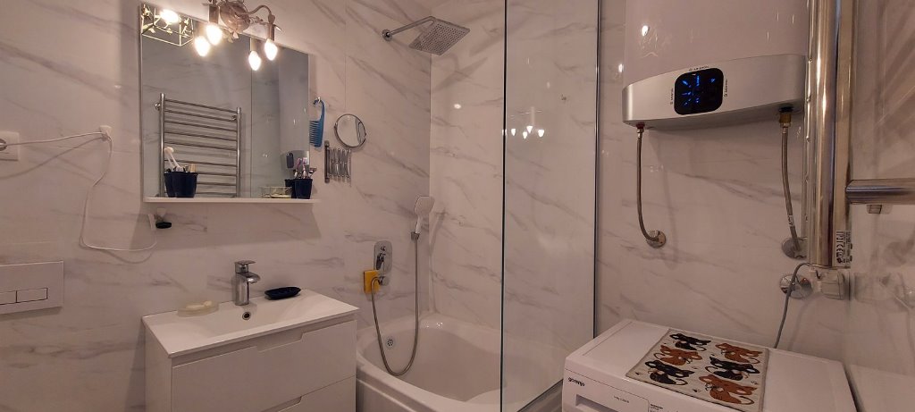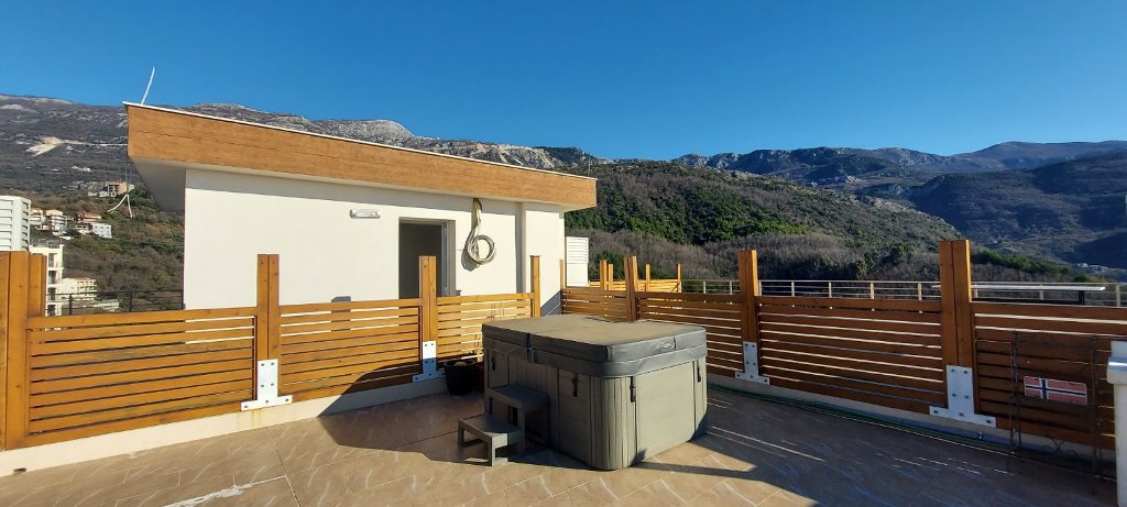 The offered penthouse has a living area of ​​51m2 and is located on the 8th floor. One of the main features of the apartment is a terrace with a jacuzzi on the roof, the area of ​​the terrace is 57m2.