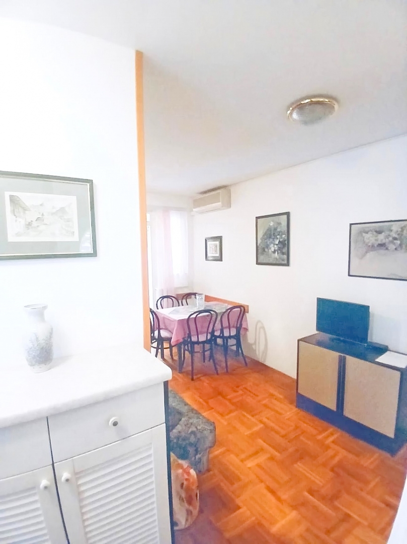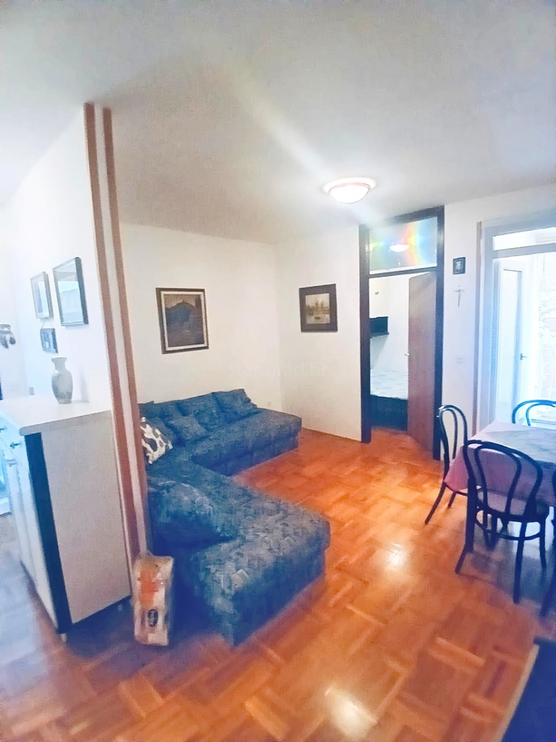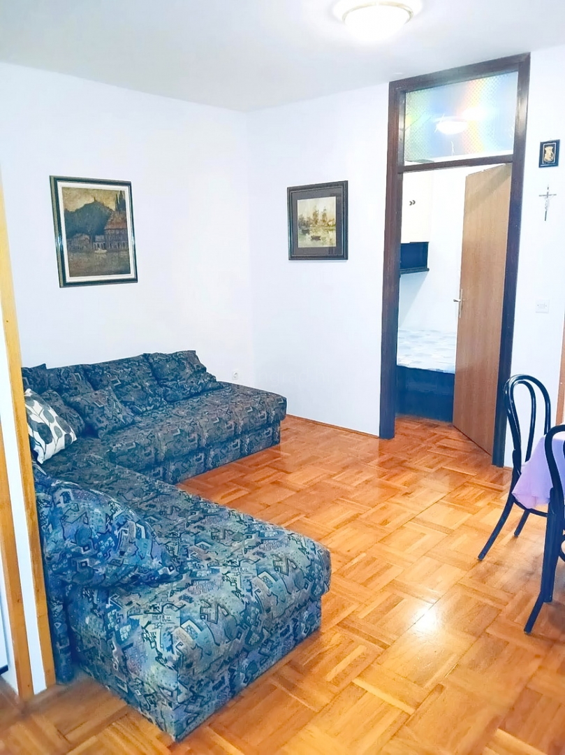 The total surface area of the apartment is 33 m², and it consists of a living room with a kitchen and dining area, one bedroom, a bathroom, and a covered balcony. The apartment is equipped with functional furniture and all the necessary technical amenities for everyday living. In addition to the interior space, the owner also has the right to use the shared part of the building’s yard.
