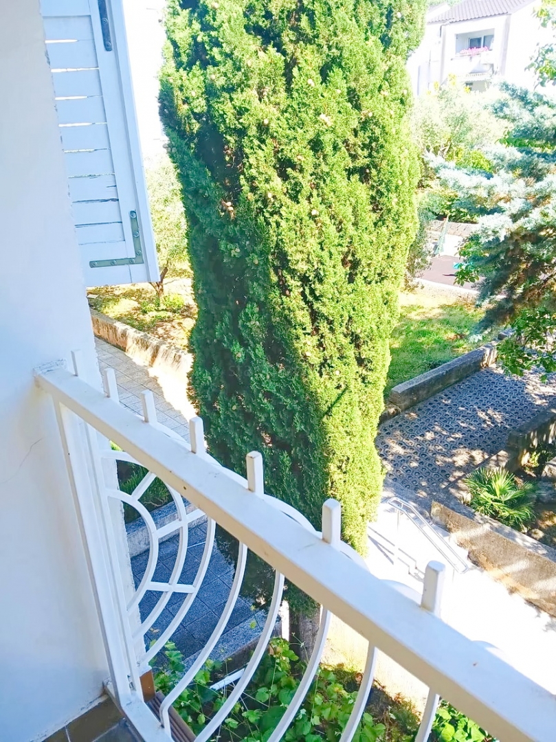 The property includes one designated parking space, and its good orientation provides a pleasant view of the nearby street and neighborhood. The apartment is owned by a private individual, and the buyer is required to pay a 3% real estate transfer tax upon the change of ownership.