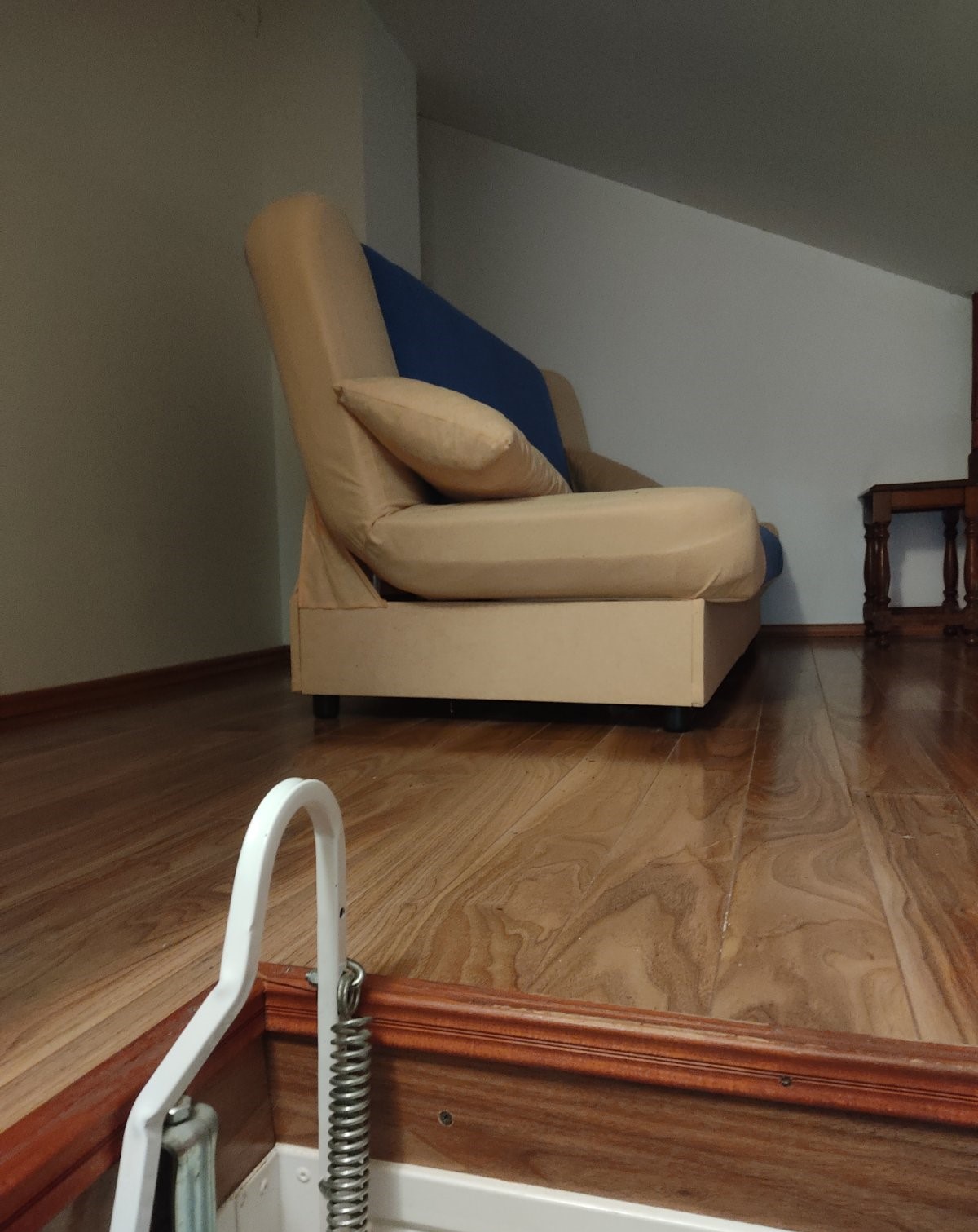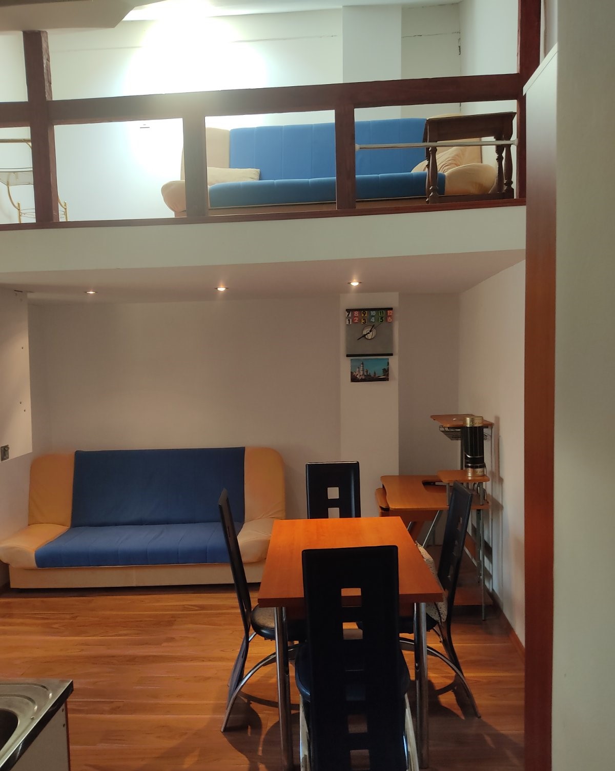 The bathroom is modernly equipped, and a special charm of the apartment is the gallery where the bed is located, providing additional space for rest and privacy.