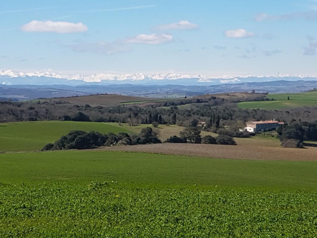 A large, beautiful swimming pool with a pool house. BBQ, covered seating area and views of the Pyrénées. There is a parking area for the guests and a separate space and private covered terrace for the owners.