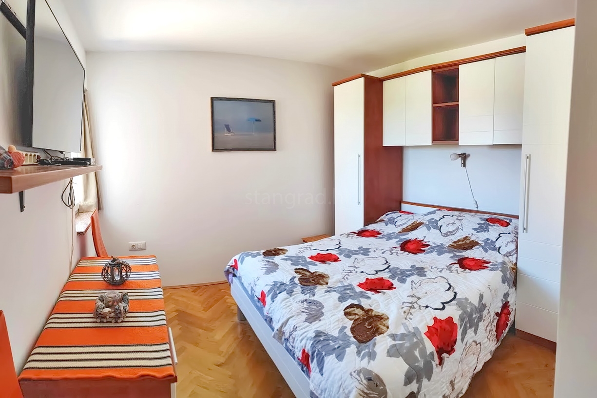 Located on the first floor of a well-constructed building, the apartment has a total area of 57 m². The floor area comprises an entrance hallway, living room and kitchen with dining area, two bedrooms, a bathroom, and a balcony. The interior spaces are exceptionally well maintained and fully equipped with all necessary appliances and high-quality furniture.
