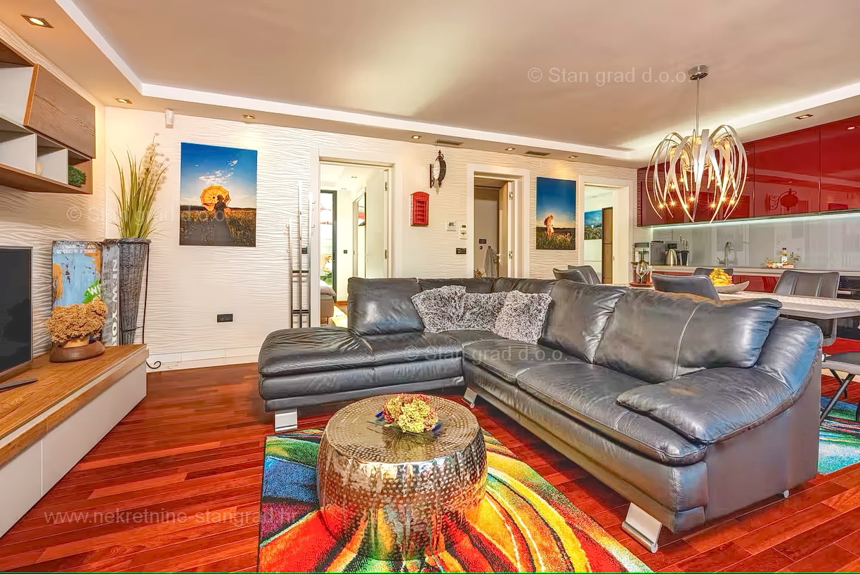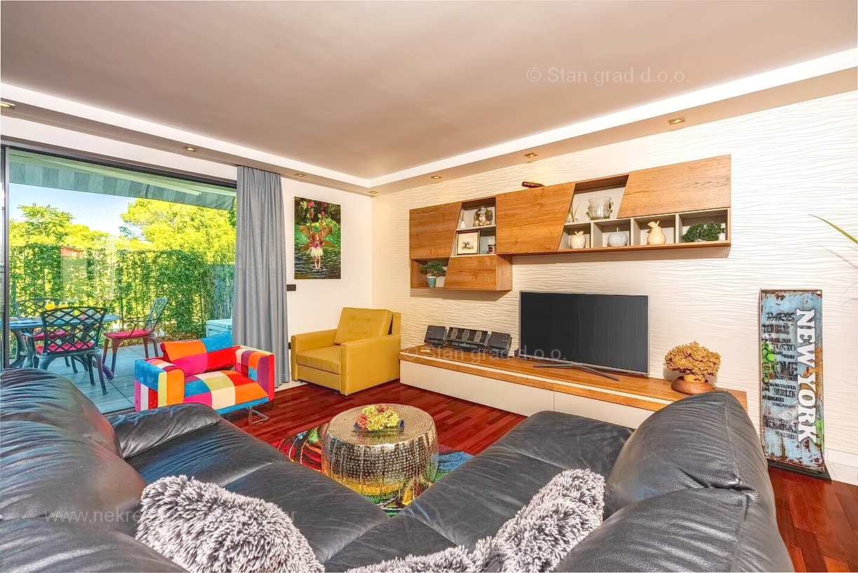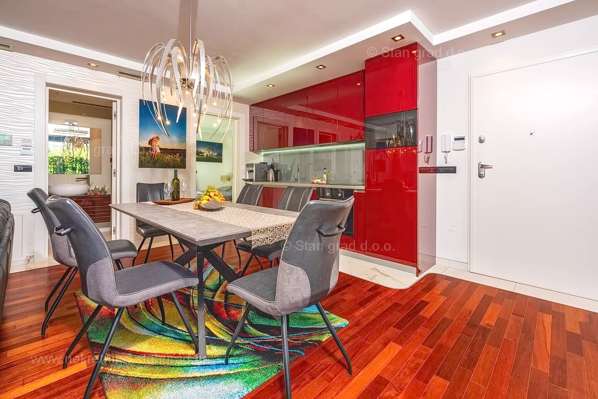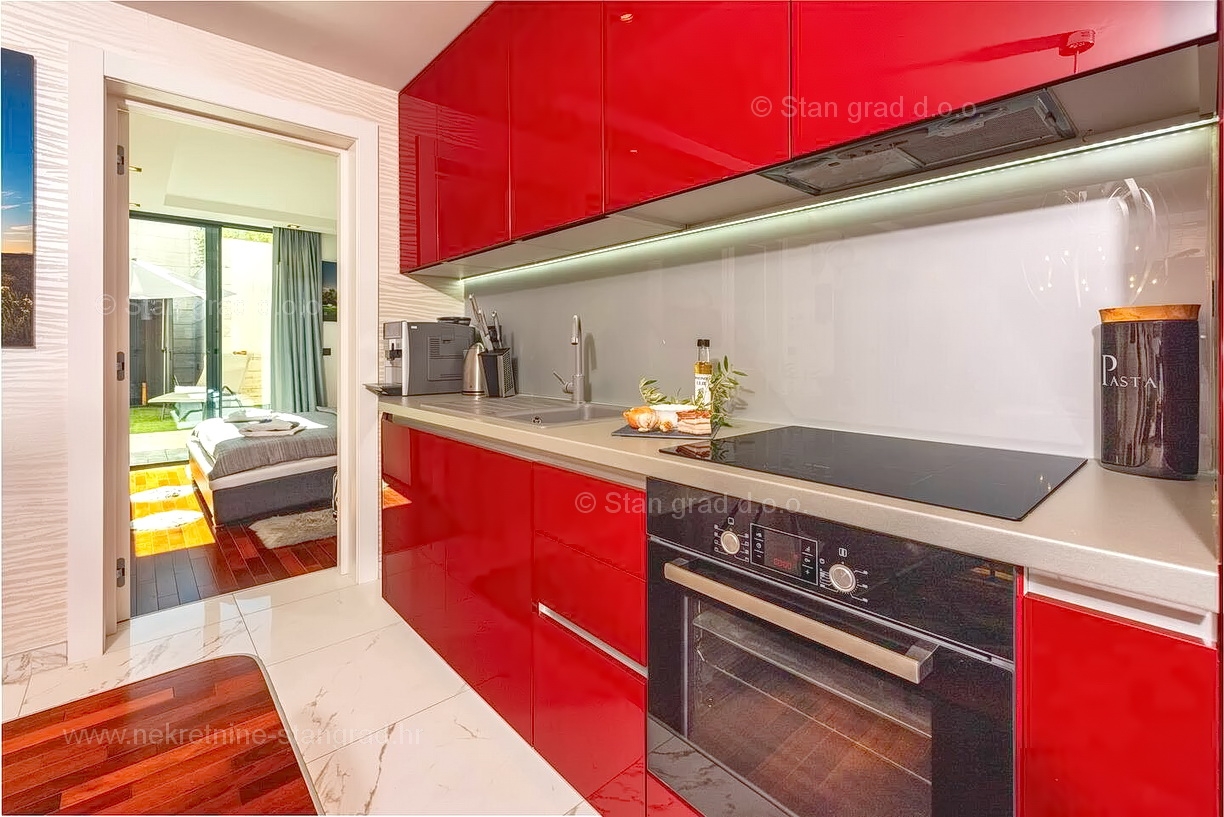 In the real estate offer of the Stan Grad Immobilien agency, on the island of Krk, there is a very attractive apartment perfect for a tourist stay and vacation on the Adriatic. This apartment is located in an excellent and rarely available location very close to the sea and near the center of Malinska and key life amenities. Considering the property type, this is a spacious one-story apartment. Within a beautifully built building, the apartment is located on the ground floor. The area of this apartment is 64 m2 in total. The aforementioned area includes an open space living room and kitchen with dining room, 2 bedrooms, 2 bathrooms, toilet and terrace. A rich set of newer generation appliances has been installed in the exceptionally maintained and luxuriously furnished interior of the property in question. It should also be emphasized that the ownership of this apartment includes a very beautifully decorated and refined garden of approximately 80 m2. The owner of the apartment will have one parking space at his disposal. In addition to the above, it can also be noted that the apartment is oriented in such a way that it offers a beautiful view of the lovely coastal landscape and the immediate surroundings of the settlement. This apartment is owned by a natural person, so the buyer is obliged to pay 3% sales tax when transferring ownership to his name. The owner of the property guarantees the orderliness of the relevant ownership documents and the possibility of a quick transfer of ownership of the apartment to the buyer. Please contact us and we will be happy to welcome you to our office on the island of Krk. In addition to finding and showing the property, the agent Stan Grad Immobilien will assist you in all necessary actions related to the transfer of ownership and taking over the property.
