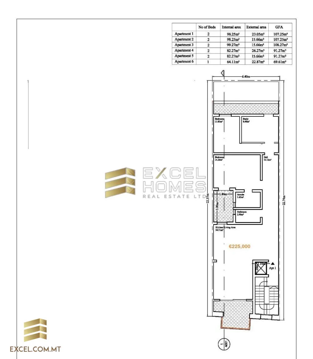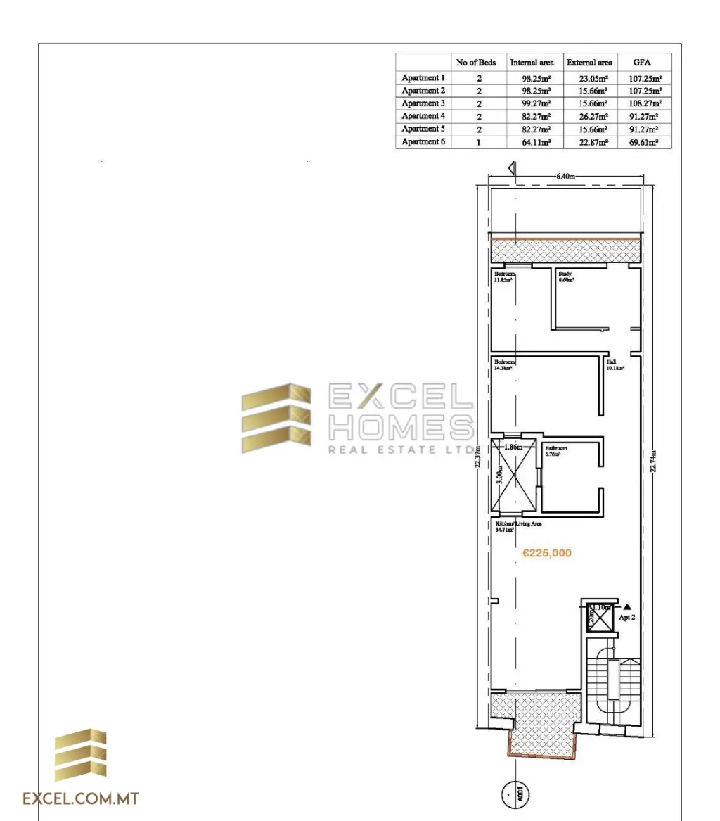 New apartments in Marsascala few minutes away from the beach is being sold finished, excluding bathrooms and internal doors. The aparment comes with two bedroom and two bathrooms also a study comes with with the property.