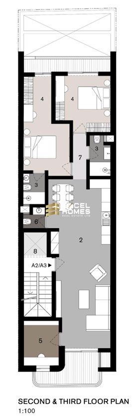 This spacious 120-square-meter apartment features two well-appointed bedrooms, a dedicated study, and three bathrooms, including a main bathroom, a private ensuite, and an additional spare bathroom for convenience. The layout is thoughtfully designed to balance comfort and functionality, complemented by both front and back terraces that provide inviting outdoor spaces for relaxation, dining, or entertaining. Ideal for modern living, this apartment offers generous room to tailor the space to your lifestyle needs. Served with lift. Starting from 355,000 including internal doors and bathrooms. Completion DEC 2026.