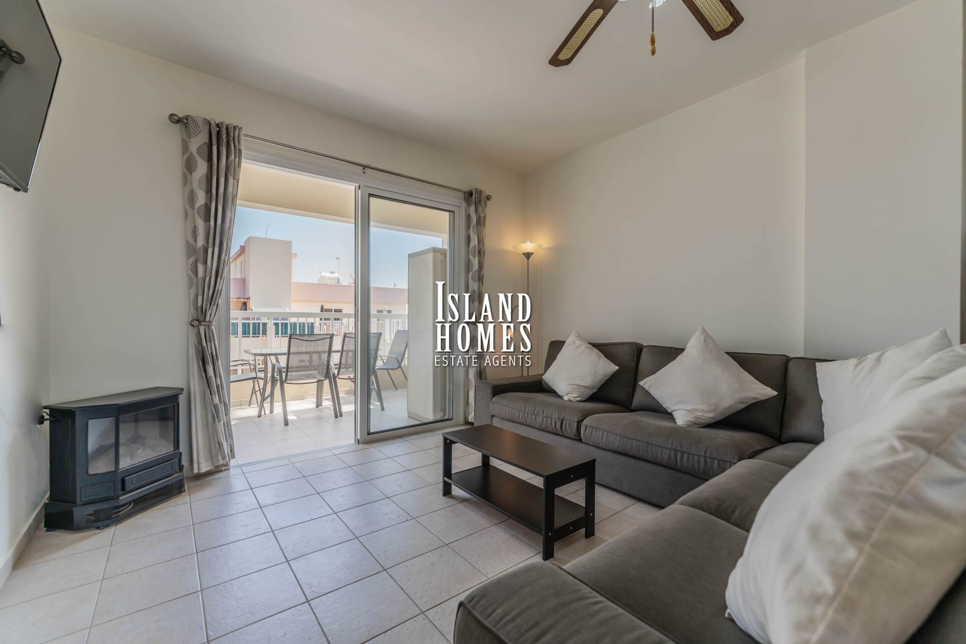 Set on a well maintained complex, just a few minutes walk from the village centre, this 2nd floor apartment has a private entrance via an external corridor. The cosy interior has been well looked after and comprises open plan kitchen, dining and living area, 2 double bedrooms and a family bathroom. The 14m2 balcony reaches the master bedroom and the living area, it has views of the communal swimming pool and surrounding fields.