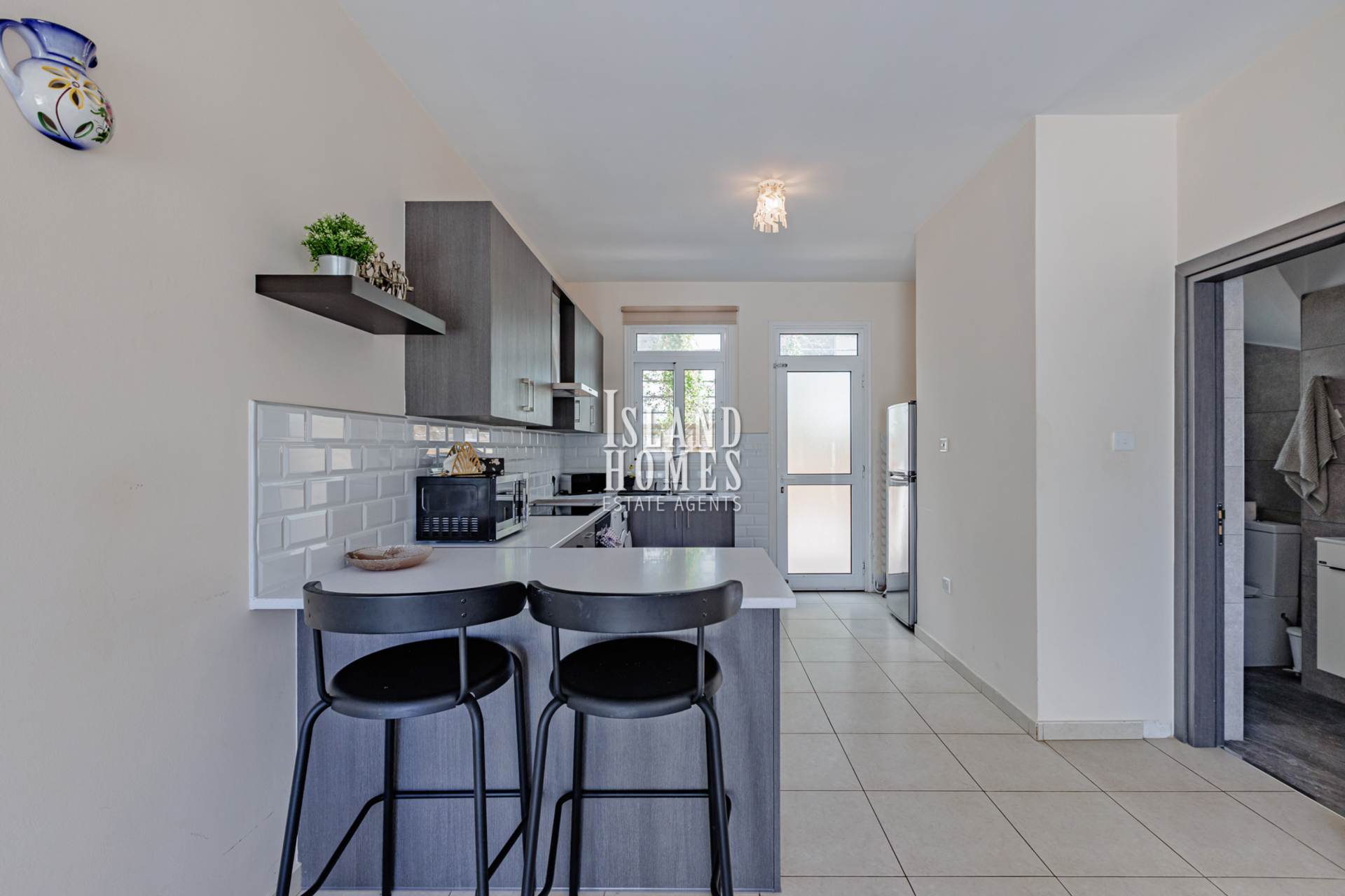 This delightful property is available for sale fully furnished in a fabulous location just 100 meters away from the coastline of Protaras. Upon entering, you are greeted with an open plan layout offering a stunning new kitchen and dining area with functional breakfast bar and ample storage. The living area is slightly off-set and offers a cozy spot to relax with views out to the private swimming pool. There is also a recently renovated bathroom on this level with W/C and walk in shower.