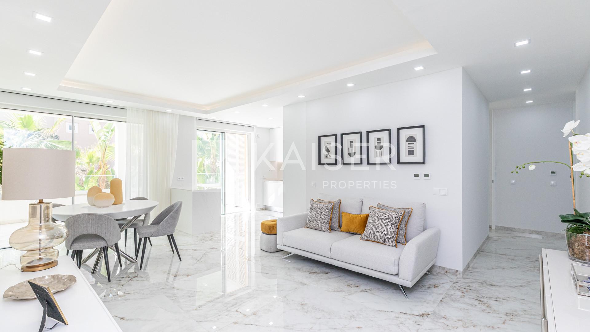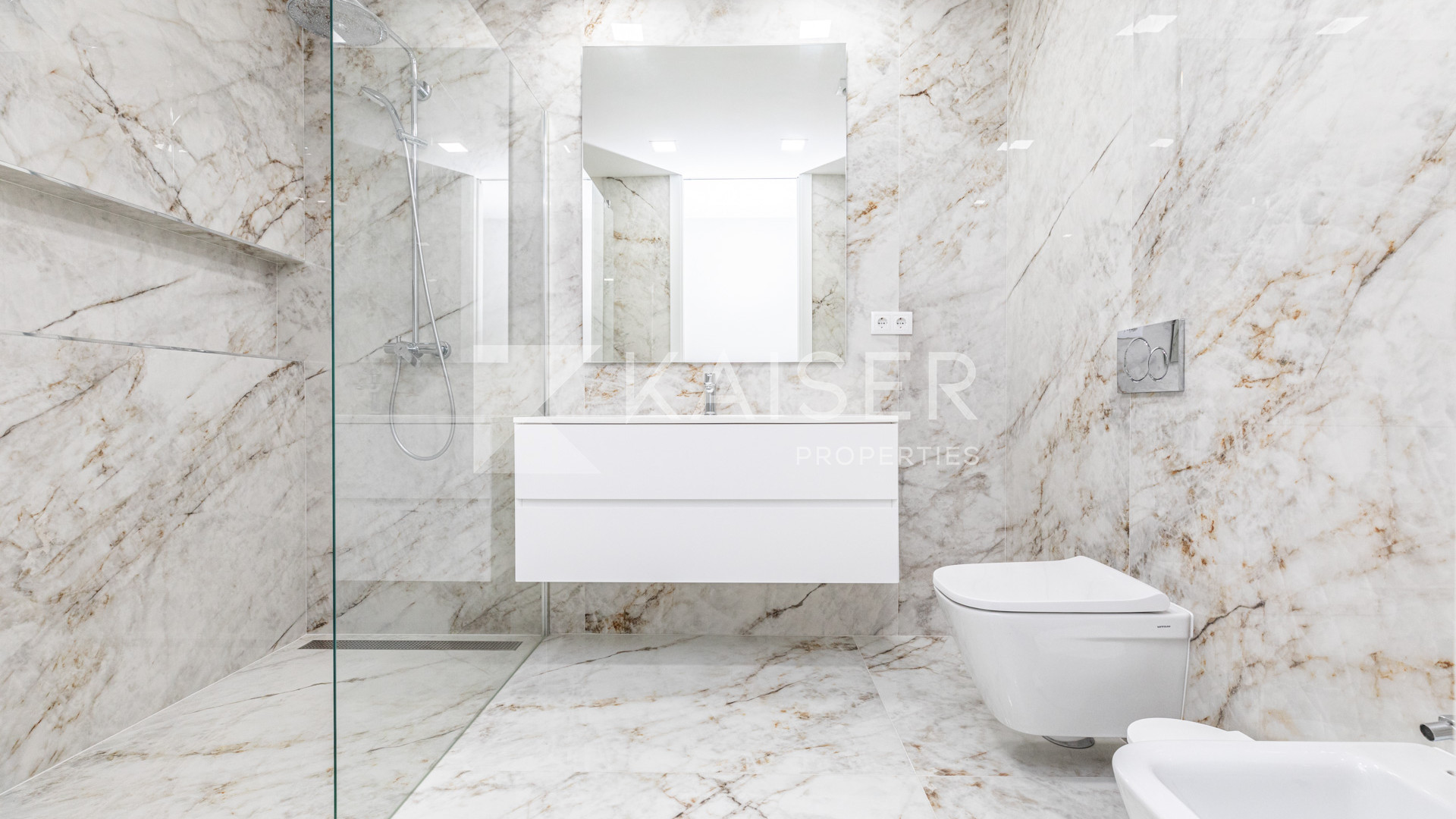 This apartment comprises a bright living and dining room with a spacious terrace, fitted and equipped kitchen, 3 bedrooms with built-in wardrobes, 2 bathrooms (one en-suite), both bedrooms with terraces.