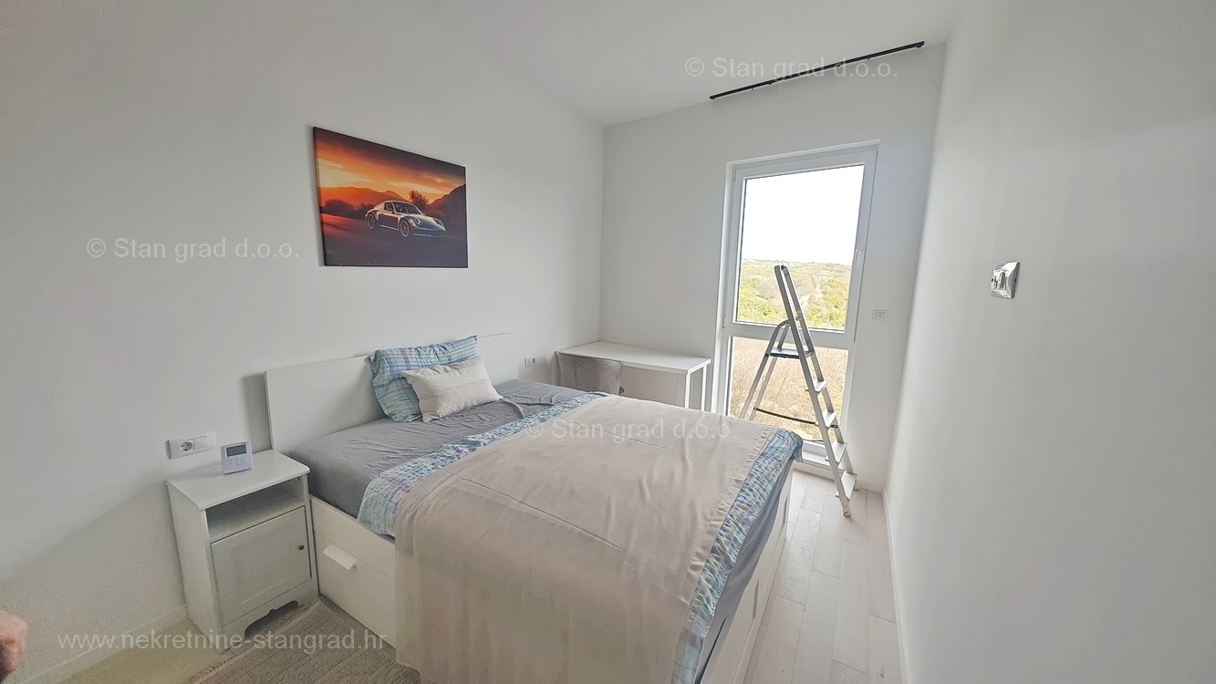 From our agency’s offer of excellent real estate in the northern Adriatic, a modern apartment built on the sought-after Croatian coastal region, the island of Krk, stands out. The available property is located in a very attractive location in the immediate vicinity of the center of the town of Krk and provides an easy walking distance to the beach. According to the type of property, it is a two-story apartment with internal stairs and an entrance area on the lower floor. In a modern building, the apartment is spread over the ground floor and the first floor. The total area of ​​this apartment is 93 m2. This area includes the entrance hall, living room and kitchen with dining room and bathroom on the ground floor. An internal staircase leads to the first floor where there is a bathroom and 3 bedrooms, one of which has an open view of the sea. The property is fully equipped with modern furniture and modern and high-quality technical equipment. It is important to emphasize that the ownership of the apartment in question also includes a 124 m2 garden with a summer kitchen and a garden house. Two cars can be comfortably parked in the adjoining part of the garden of the described property. In addition to the previously described features of this property, we would also like to point out the excellent orientation of the apartment’s attractive view towards the nearby urbanized surroundings, the sea and the natural landscape. This apartment is owned by a natural person, so the buyer is obliged to pay sales tax in the amount of 3% when transferring its ownership to his name. The real estate seller guarantees a quick transfer of ownership rights and proper ownership and technical documentation. Get in touch and we will be happy to receive you in our office on the island of Krk. If you put your trust in us, the friendly team of agents and staff of the Stan Grad Immobilien office will be happy to help you transfer the ownership of the property and the utility bill to your name.