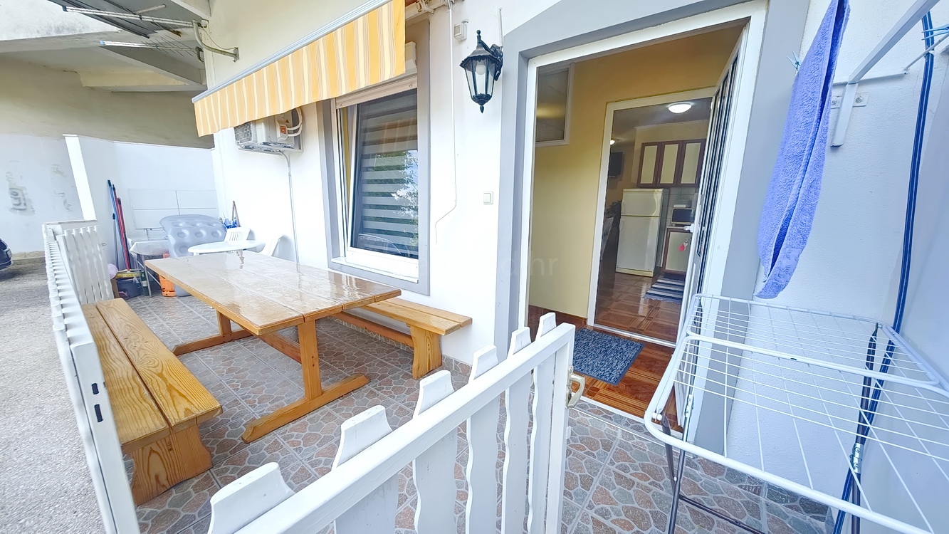 The owner of the apartment has the right to use the shared part of the building’s courtyard, and parking is available on a communal public area in front of the apartment. Additionally, the orientation of the apartment offers a partial view of the sea and the charming coastal surroundings, further enhancing its appeal.