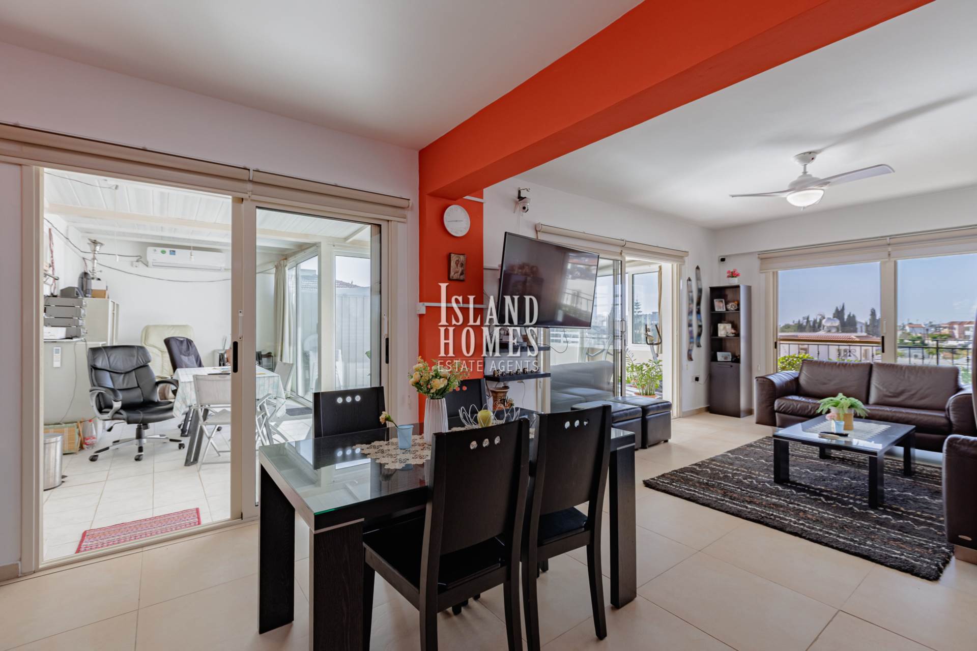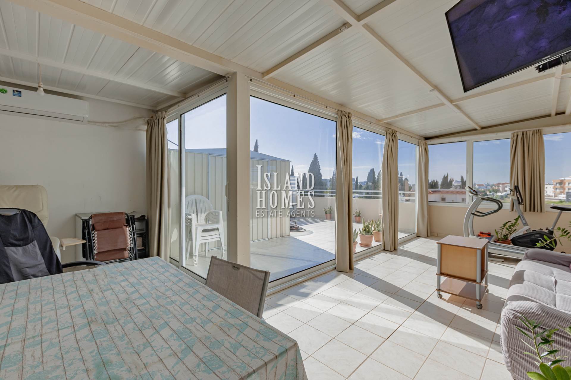 3 bedroom, 2 bathroom, 1 WC, second floor apartment with 3 verandas totalling approx 100m2, communal swimming pool and TITLE DEEDS for share of land in convenient location of Paralimni FG9101