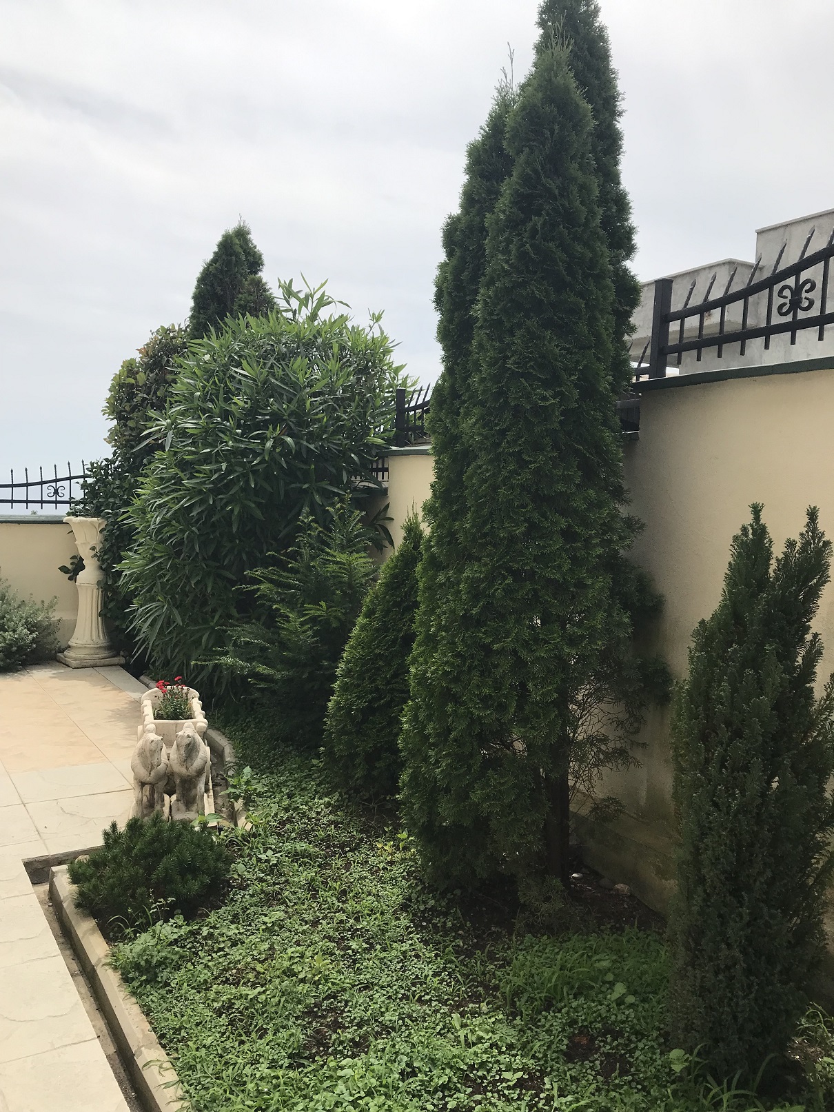 located on a plot of 551 m2. Distance to the sea is 250 meters. All city communications are connected to the house. On the plot there is a terrace and a swimming pool 8 m long. There is also an additional bathroom. The house is fully furnished and equipped with household appliances.