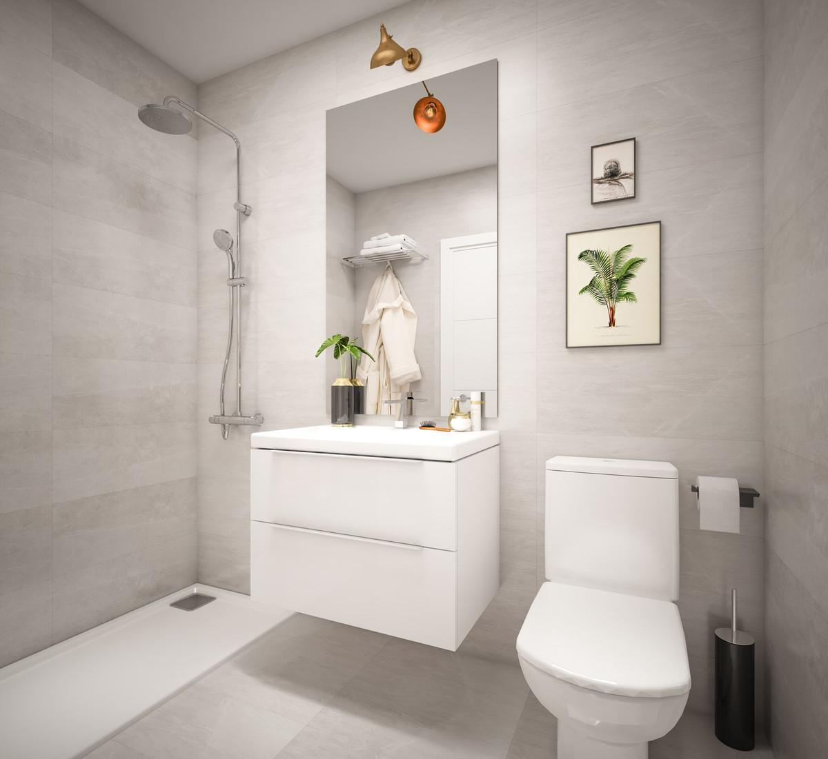 This brand new development is located on Calle Menta in Benalmadena (Málaga). It is the new residential in Benalmadena, Málaga. The private urbanization has 70 homes of 2 and 3 bedrooms, in addition to a wide variety of typologies, among which penthouses stand out. Its architecture and design have been studied to provide prominence to the terraces, which seek the light and the breeze that the Costa del Sol offers, in addition to its views of the sea. The private urbanization has common areas with a swimming pool, a chill out area and a gym with sauna. Everything you need to enjoy leisure time!