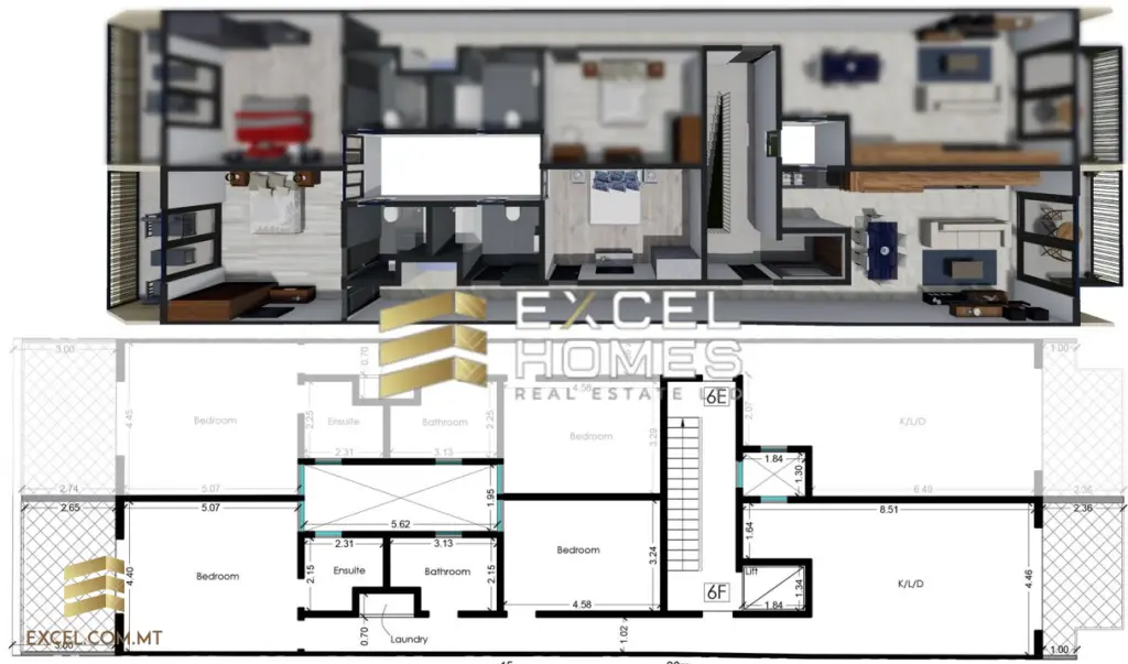 These penthouses feature 2 spacious bedrooms, one of which includes an en-suite bathroom, as well as a guest bathroom and a laundry room. The open plan kitchen, living and dining area is the perfect space for entertaining guests, with its seamless blend of style and functionality. These penthouses offer the perfect canvas to create your dream home in one of the most sought-after locations on the island.