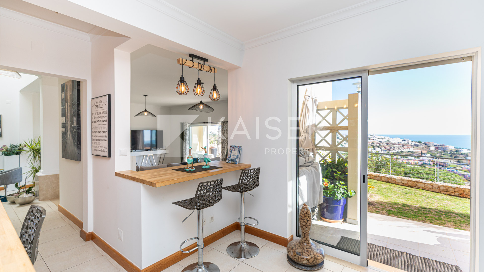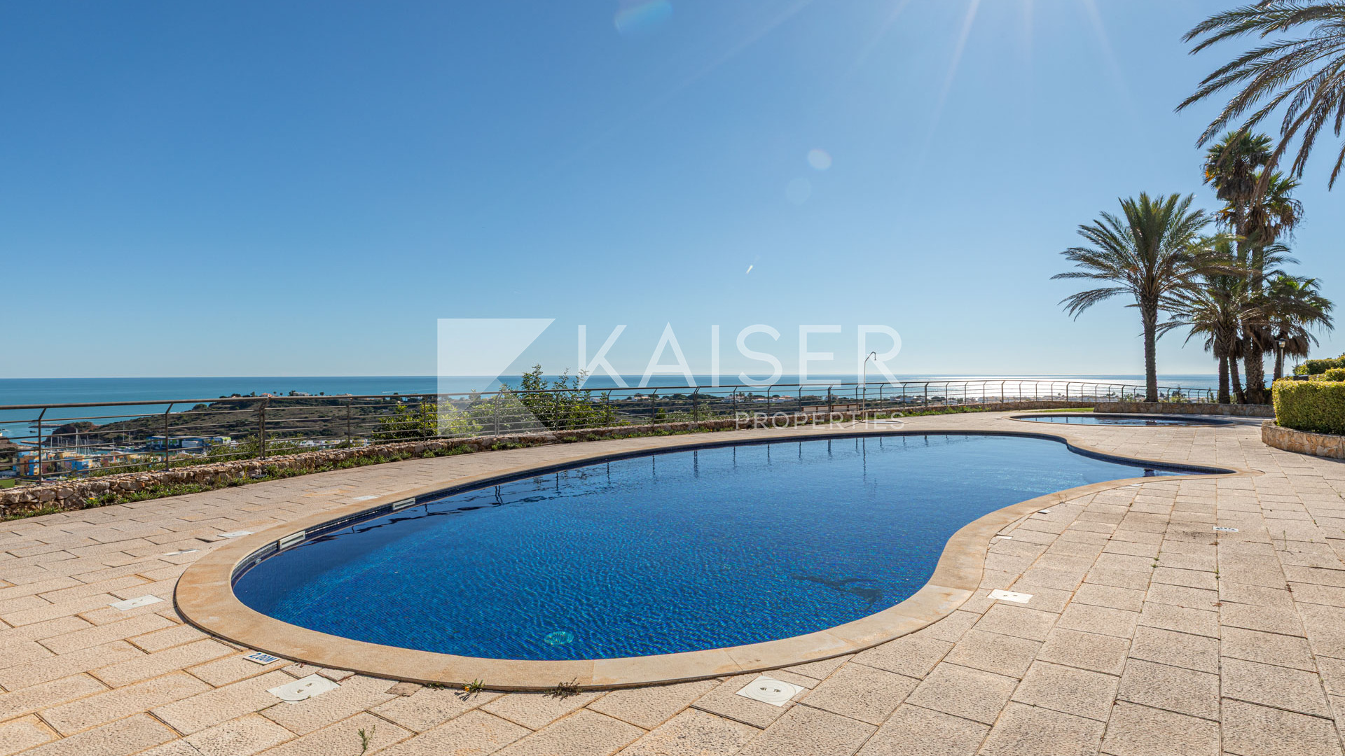 Set within an exclusive private hillside complex, this residence enjoys a truly privileged position with sweeping panoramic views across the coastline and the sparkling ocean. Recently refurbished to a high standard, it blends modern comfort with an elegant, tranquil ambiance, enhanced by beautifully landscaped gardens and tall palm trees. The home offers direct access to an impeccably maintained pool area, creating a serene retreat in a prestigious setting. Ideally located just 5 minutes from a selection of beautiful beaches and only 8 minutes from Salgados Golf Course. It comprises: