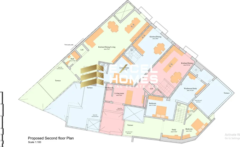 This layout provides a perfect blend of modern design and functionality. It features an internally connected garage for convenience, alongside a spacious sitting room and open kitchen, dining, and living areas that are ideal for entertaining. With a beautiful backyard and multiple balconies and a terrace, there is plenty of outdoor space to relax and enjoy. The layout also boasts three bedrooms and three bathrooms, providing ample room for family or guests. For those looking to work or study from home, there is a dedicated library space. The option for a lift adds even more convenience to this well-designed layout. Construction is set to begin in January 2026 and scheduled to be completed by the end of that year, offering a quick timeline for future residents to enjoy their dream home.