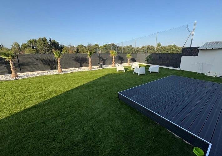 Villa built in 2024 with high-end materials, surrounded by a landscaped garden of 500m² with swimming pool, large garage and four outdoor parking spaces; Located in a quiet residential environment, but close to schools, train station, main roads and all the amenities for an active family. This property is composed of three bedrooms with a master suite on the ground floor with shower room and separate toilet, utility room, large living/dinning kitchen with a totally equipped kitchen with two french doors opening into a landscaped garden and pool.