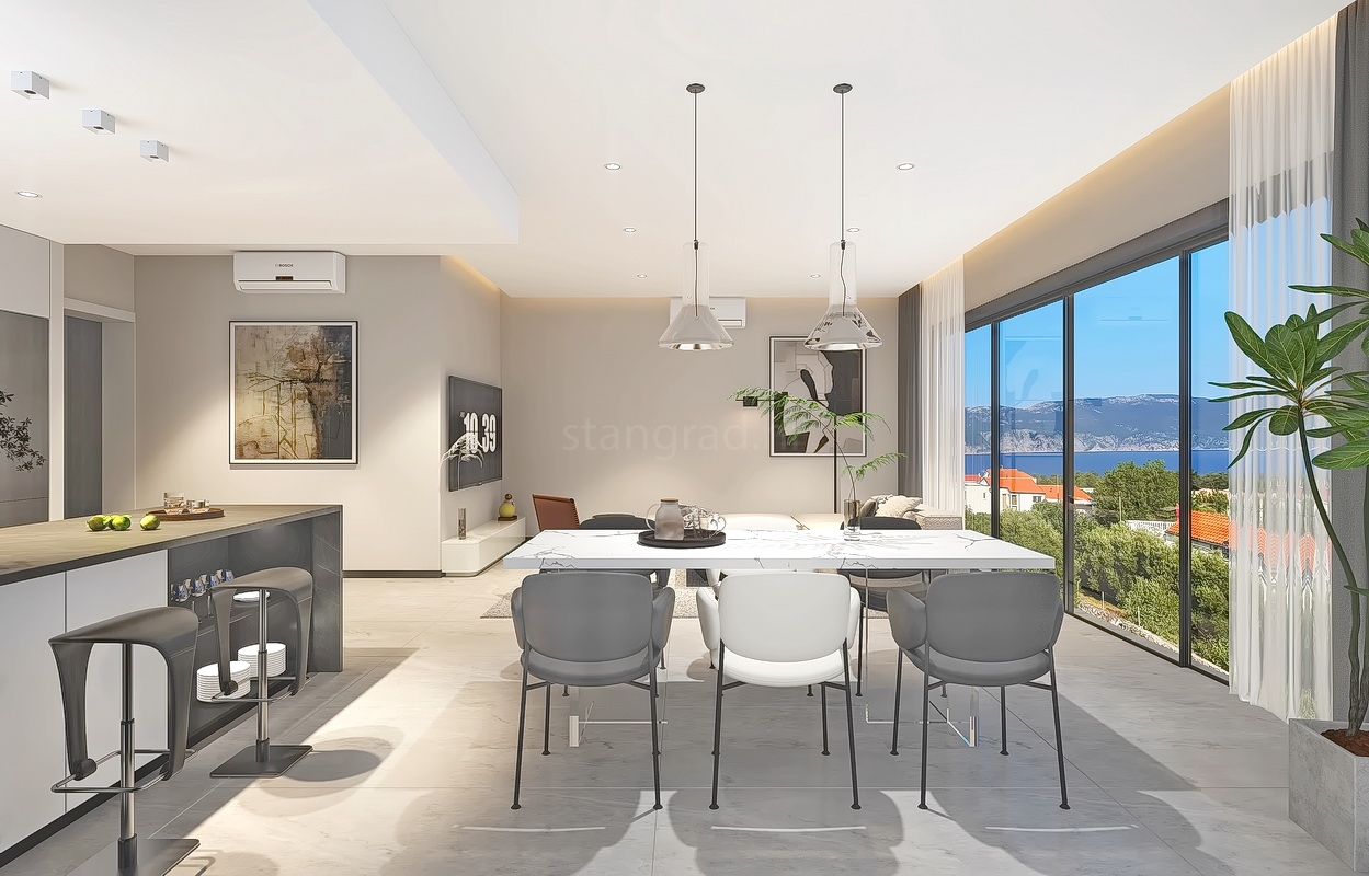 Among the wide range of properties on the northern Adriatic, the agency Stan Grad Immobilien presents a very luxurious coastal villa in the attractive tourist region of Krk Island. This stunning house is situated in a highly desirable location, close to the sea and the center of the tourist hub of Krk.
