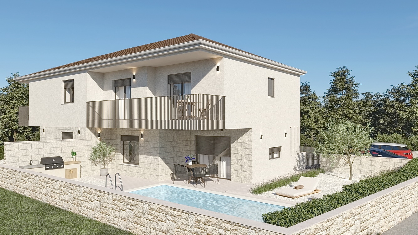 From our selection of high-quality real estate on the northern Adriatic, we highlight a modern tourism-oriented house located in the sought-after coastal region of the island of Krk. This property is situated in a quiet area of the seaside town of Malinska, not too far from the sea, making it ideal for relaxation or tourist rental.