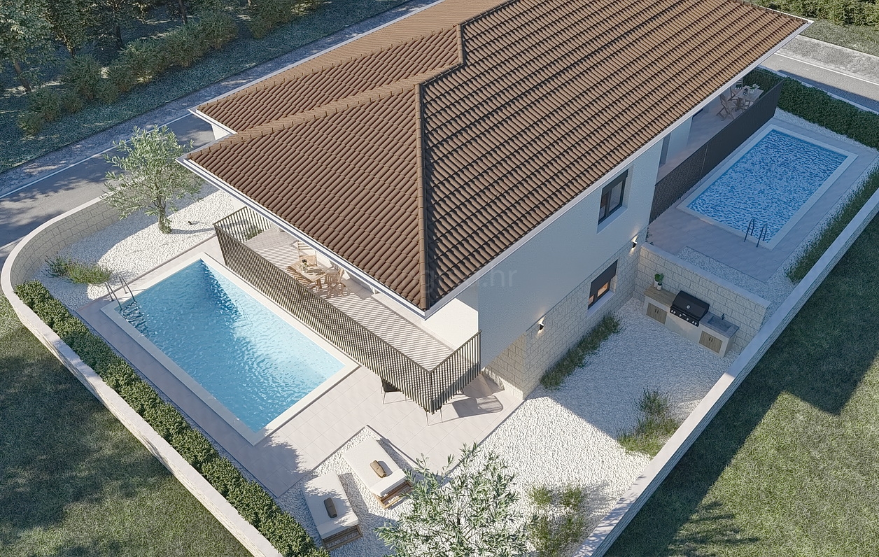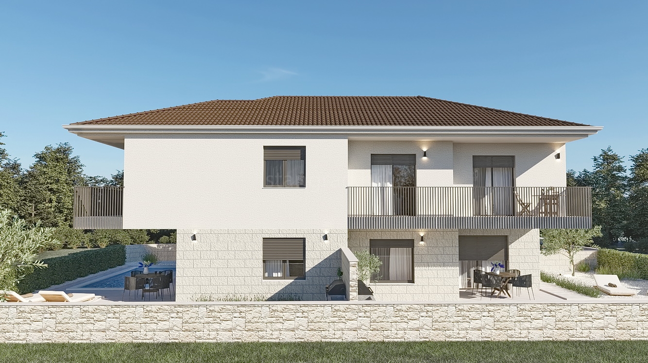 From the wide selection of high-quality properties offered by our agency in the northern Adriatic, this contemporary house stands out, ideal for tourism or residential use. It is located in a highly sought-after and attractive region on the island of Krk, in a peaceful area of Malinska. The property is situated at a comfortable distance from the sea, enhancing its appeal for both vacationing and tourist rental purposes.