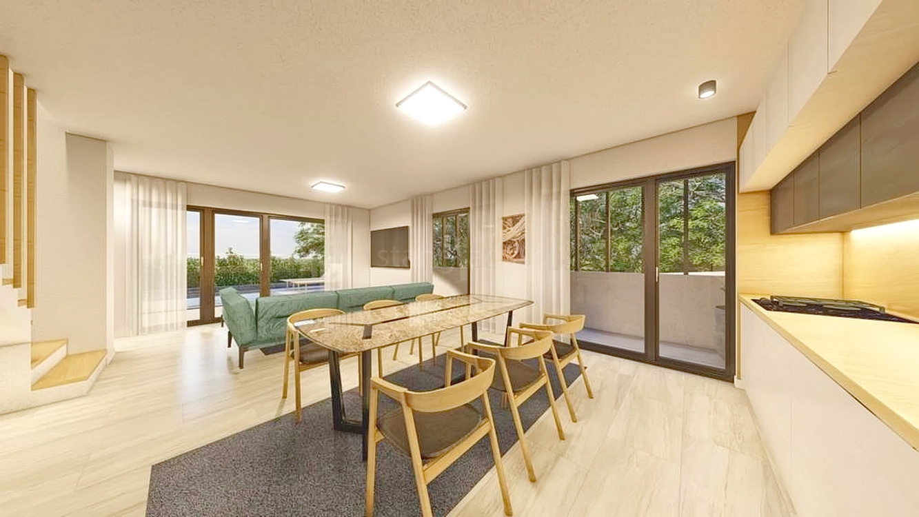 A particularly appealing feature of this property is the beautifully landscaped 140 m² yard with a swimming pool and sunbathing area, while the parking space comfortably accommodates two vehicles. The house also offers a partial sea view, further enhancing its tourist potential and quality of life. The house is currently under construction, with building works scheduled for 2025 and 2026. High-quality materials and equipment are planned, including multi-split air conditioning, parquet flooring in the bedrooms, underfloor heating in the bathrooms, hallway and ground floor, Italian tiles, PVC joinery, and electric roller shutters.