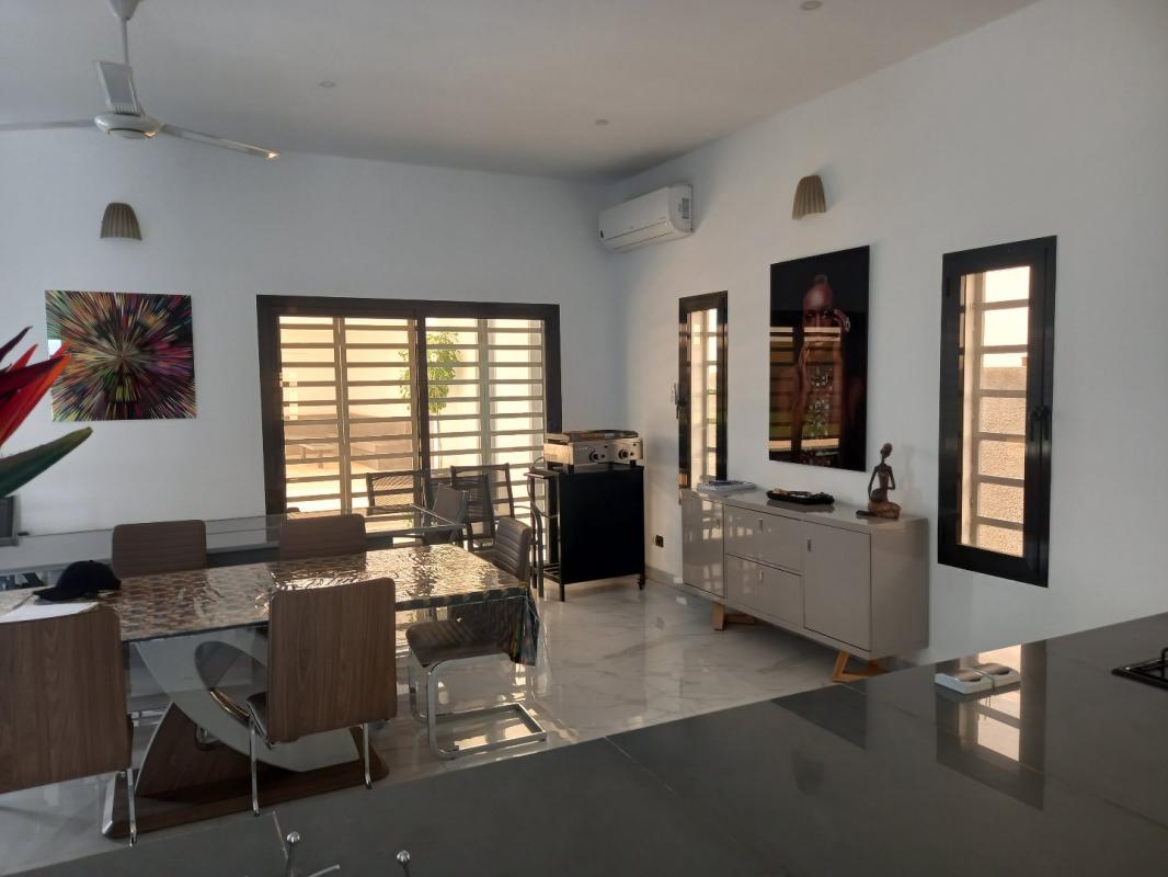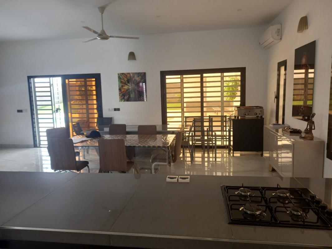 Don’t miss this sales opportunity offered by SELECTION SENEGAL! Modern, furnished villa, built in 2021, located in a residential estate of only 6 villas, ideally situated just 500m from both the sea and the Auchan Saly Center shopping mall. The villa comprises 3 bedrooms, each with its own bathroom, a dressing room in the master bedroom, a large 80m² living area with dining room, lounge, and bar, a fully equipped open-plan kitchen, a pantry, a guest WC, a large covered terrace, a private swimming pool with bar, a pool house, a closed garage, and indoor parking spaces. Living area: 210m² Land area: 839m²