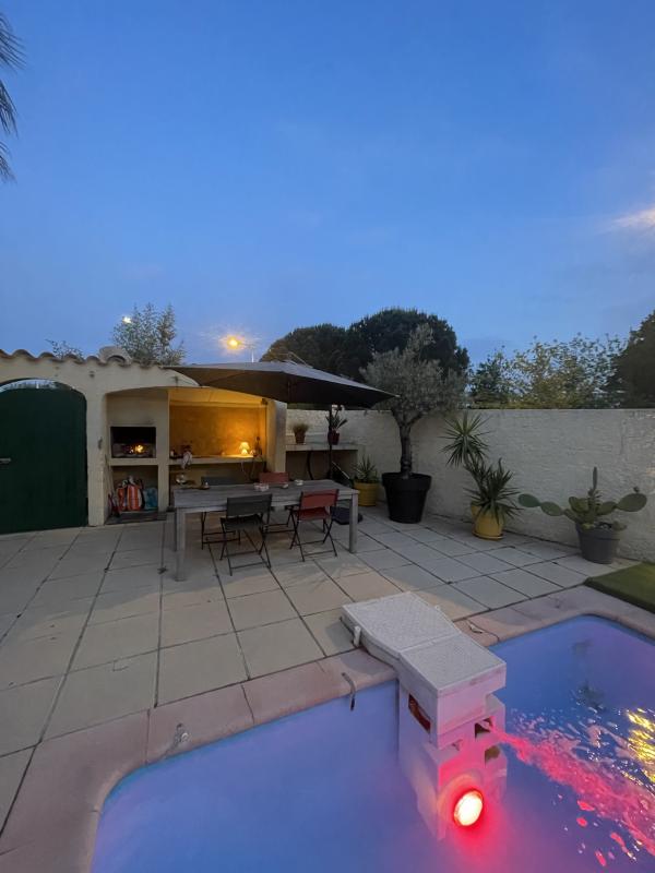 In a quiet neighborhood close to all amenities, discover this villa offering comfort, tranquility, and privacy. This house consists of a large living room with an open kitchen, 3 bright and spacious bedrooms. A bathroom and a separate toilet. You will also benefit from a mezzanine serving as an office, a storeroom, and a spacious workshop. The garden is wooded and enclosed, benefiting from an access gate. To complete this property, you will have a magnificent swimming pool, a summer kitchen with a barbecue, as well as outbuildings. A rare property in the area. Information on the risks to which this property is exposed is available on the Georisques website: www.georisques.gouv.fr »