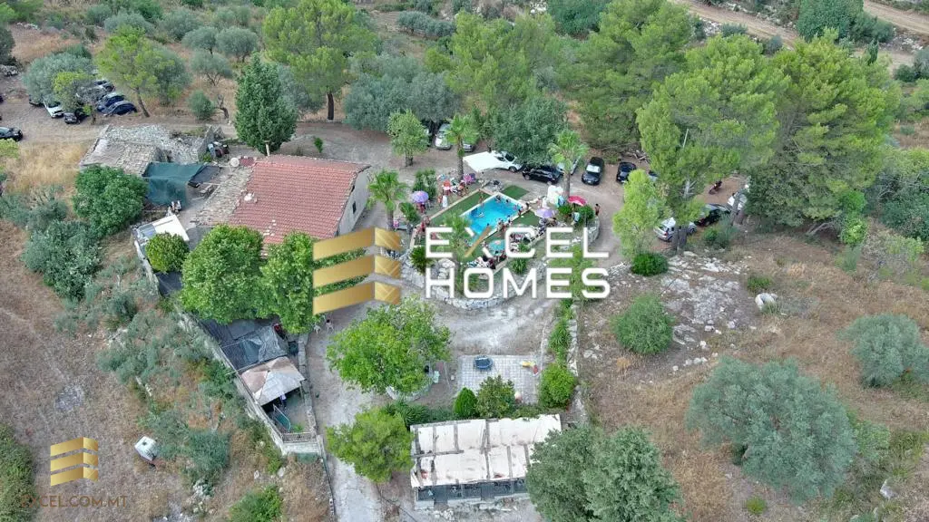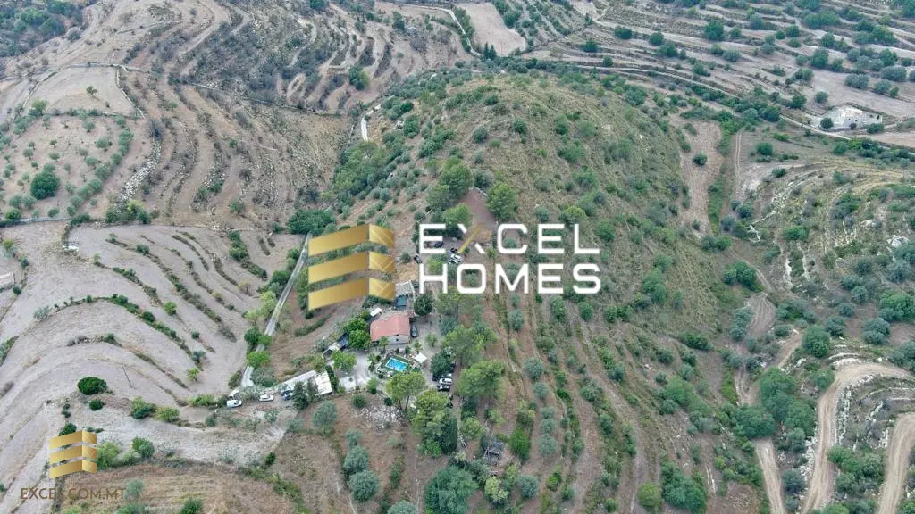 San Giacomo Montesano A large agricultural property, consisting of about 4 hectares (40,000sqm) of land located on an entire hill with all its small and large terraces which dominate the landscape. The buildings are all built on the top of the hill where you find a characteristic farmhouse type cottage of 150sqm already habitable and in good structural condition with an attached rustic room and stone oven, as well as a large wooden pergola that acts as a veranda on the barbecue area. A beautiful swimming pool with palm trees around it makes it an oasis of tranquility and peace. In addition to the already habitable house there are other rural buildings of about 200sqm to be restored with typical stone character. In addition to the existing Buildings, it is possible to build another building of about 400sqm.