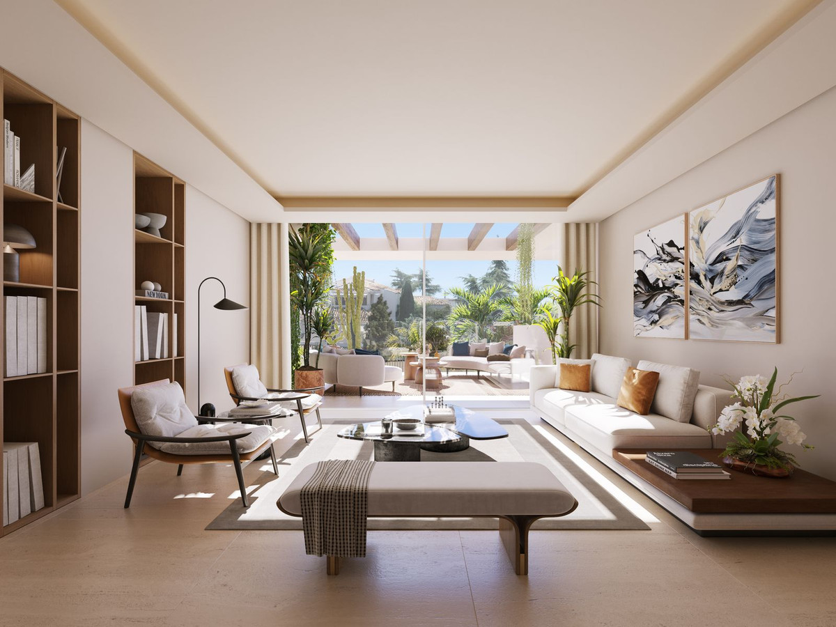 Situated in the best location in Marbella, the Golden Mile, minutes away from the legendary Marbella Club Hotel, the Puente Romano Resort and the beach. A gated community of 28 ultra-modern apartments and penthouses from 3-4 bedrooms with bathrooms en-suite distributed over four blocks – Water, Stone, Wood, and Sand. Ground floor apartments with private garden and extensive terraces, first floor apartments, first floor semi-duplex-penthouses and double-sized duplex penthouses both with a large terrace and solarium with private pool. These residences are designed to provide contemporary living in a private gated community, with 24/7 surveillance that sets the standard in terms of security. The modern and luxurious design of the apartments, built to the highest qualities, is balanced with the use of warm tones and ample natural light. They offer beautiful open-plan living spaces, top-of-the-range kitchens from Modulnova and much more. Each residence is equipped with sophisticated home automation. All the residences include two underground parking spaces and a storage room as well as a pre-installation for charging electric cars. Besides the large saltwater outdoor pool set within the beautiful gardens, an impressive spa with an ample heated indoor pool with a waterfall overlooking the fully-equipped gym. A dedicated yoga room and a choice of dry and wet saunas offer a serene retreat. Its youngest residents will enjoy their own kids club and pool. This is the finest offer of exclusive modern and sustainable homes available in the best location in Marbella today. Construction has already started and is scheduled to be completed in spring 2025.