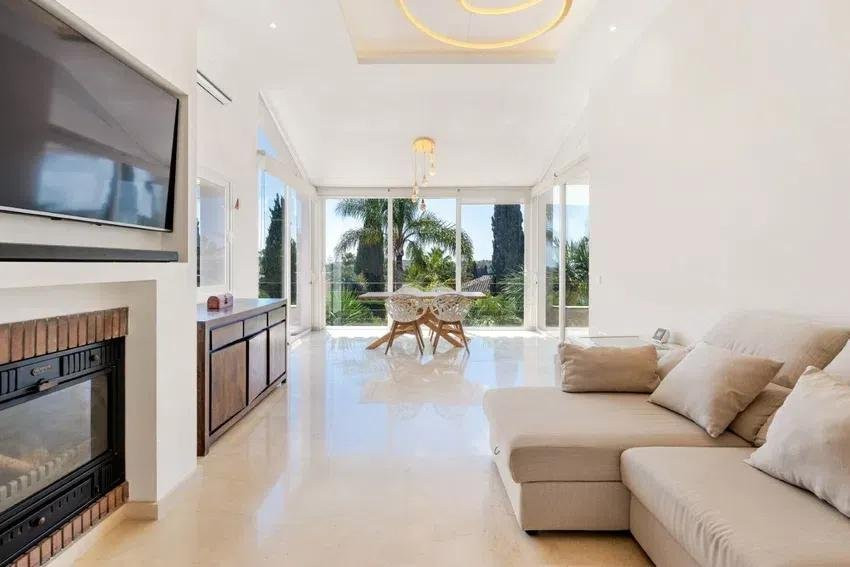 The exterior boasts a well-maintained Mediterranean garden, relaxation areas, an outdoor kitchen with barbecue, and a private pool, creating the perfect environment for the Costa del Sol lifestyle.
