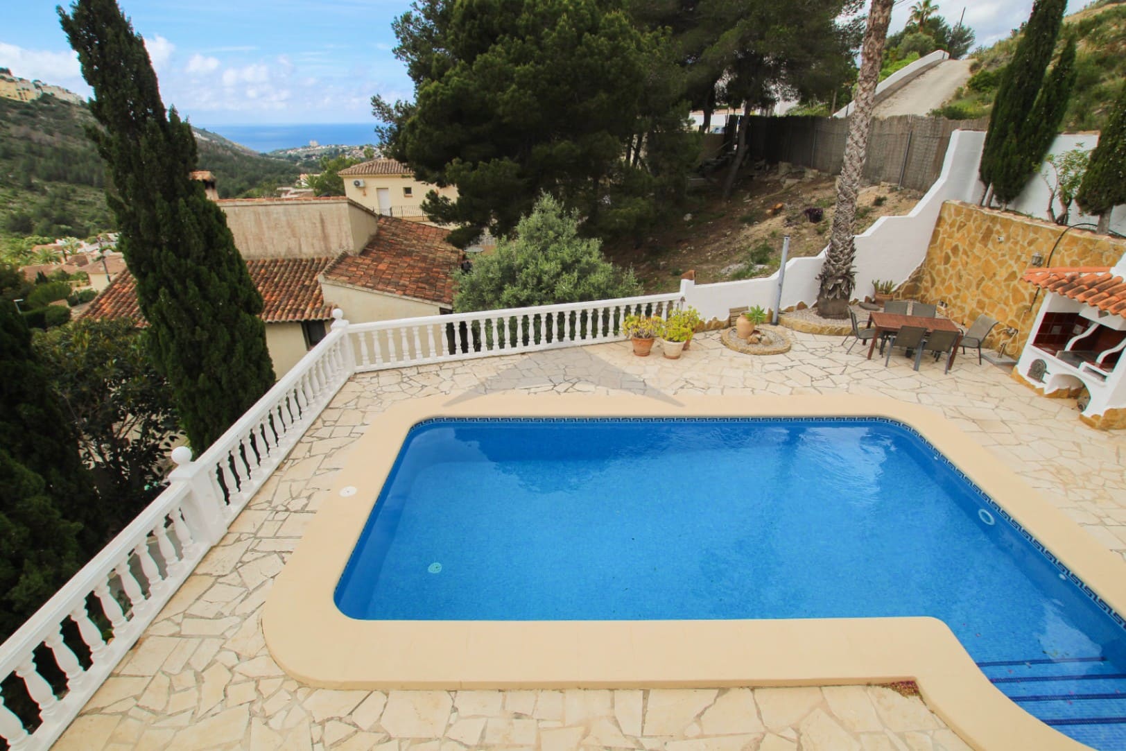 This family villa, arranged over two levels and facing south, offers stunning views of the Cumbre hills and the Mediterranean Sea. Its open-plan living room includes a bright lounge with a fireplace, a dining area, and a modern kitchen. A cozy Naya provides the perfect spot to enjoy the winter sun.
