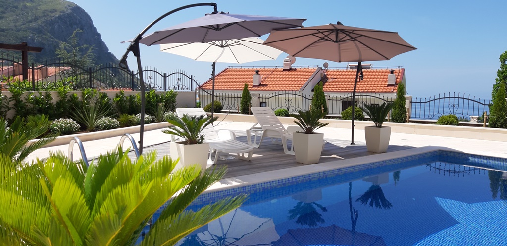 Luxury villa for sale in the exclusive area of Sveti Stefan, nearby the center of the town Budva. The location of the villa is 900 meters away from the sea which makes it a perfect summer getaway. The villa has an area of 500 m2 and is situated on a 354 m2 plot. The courtyard of the villa has beautiful, well-maintained gardens, spacious swimming pool and a parking space.