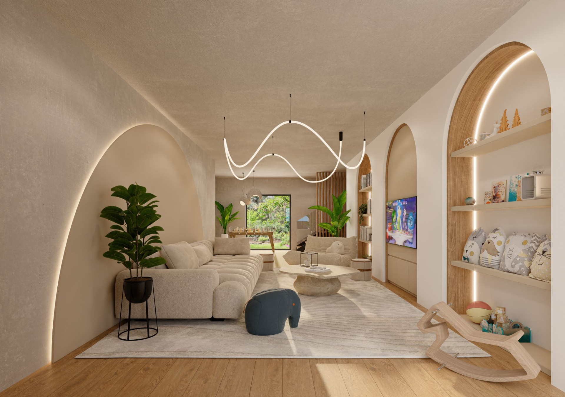 The villas have a built area ranging from 545 m² to 562 m² and are distributed over two floors. On the main floor, the living-dining room with an open kitchen is the heart of the home, ideal for family gatherings or dinners with friends. The rooftop terrace offers 360-degree panoramic views, perfect for enjoying sunsets. Additionally, there is a semi-basement providing extra space for parking and other rooms.