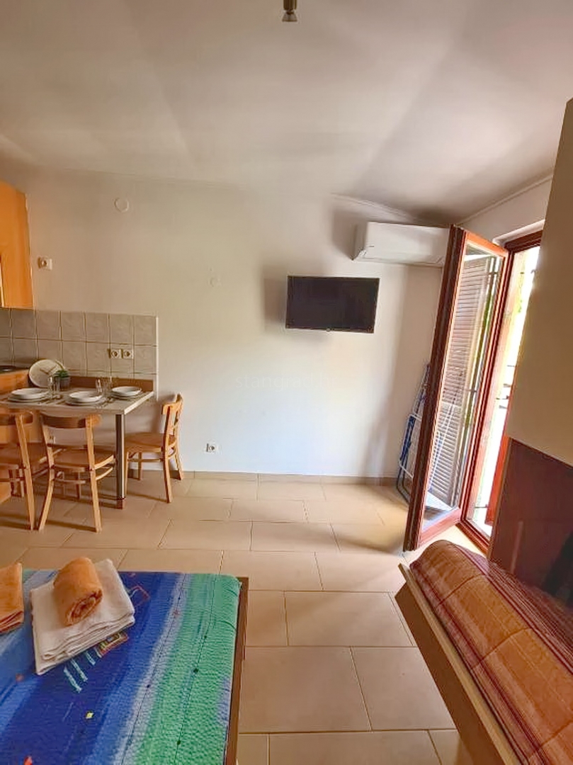Structurally, this is a detached, two-level house. The tastefully arranged property is spread over two functional floors and is divided into three separate apartments. The total surface area of the house is 120 m². On the ground floor, there is a two-bedroom apartment with a terrace, while the upper floor features two studio apartments, each with its own terrace offering a lovely sea view. The interior is well-maintained and fully equipped with modern appliances and quality furniture.