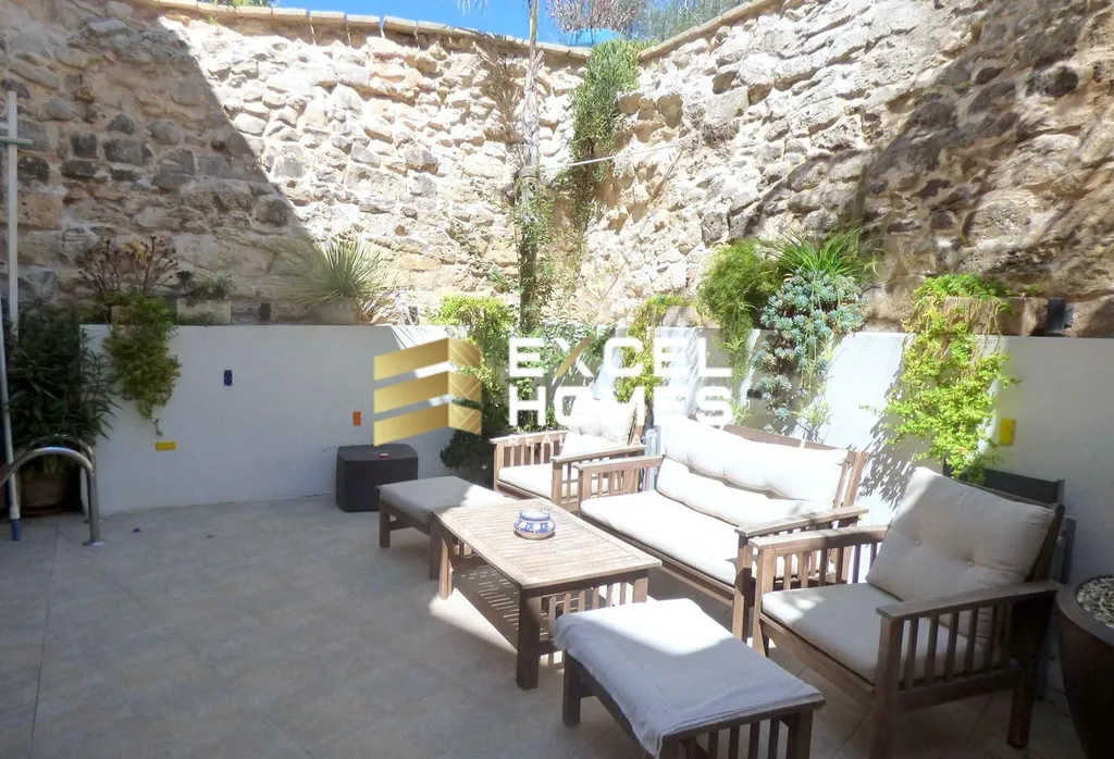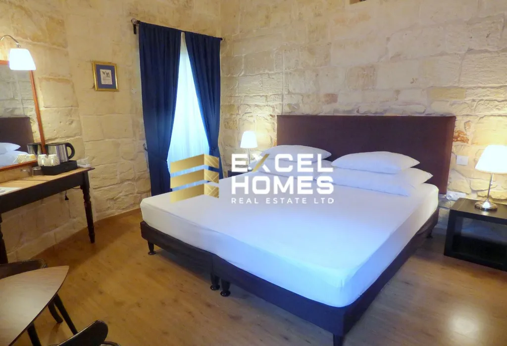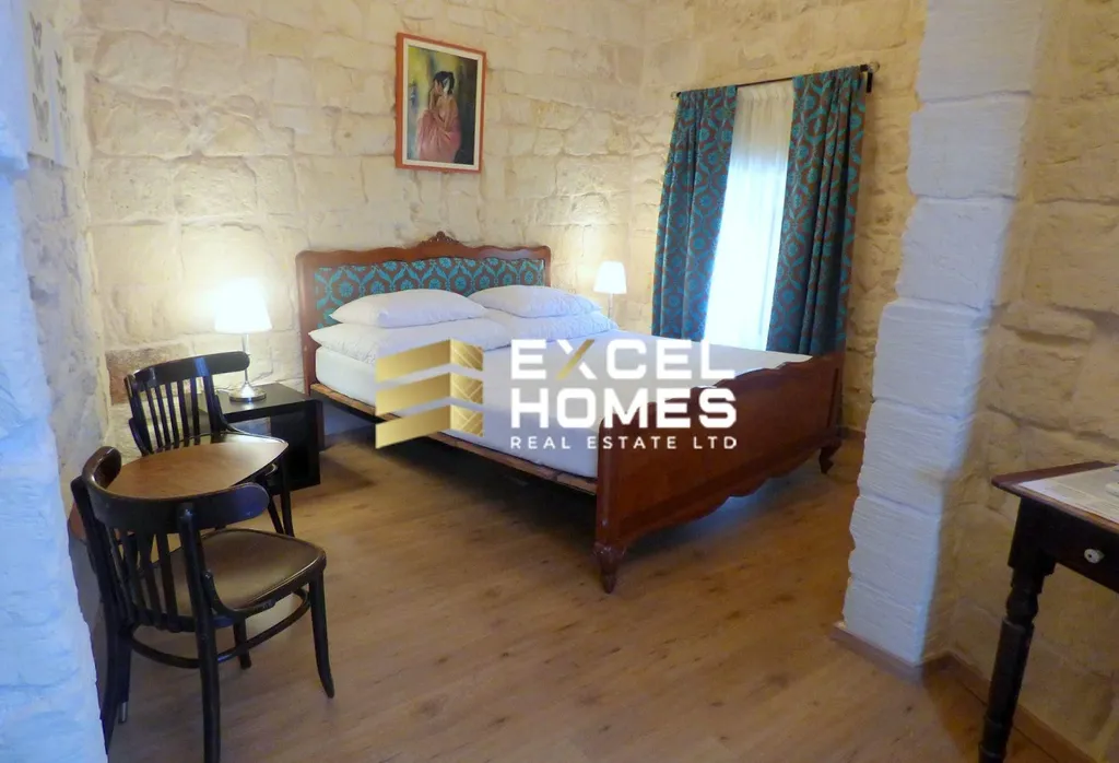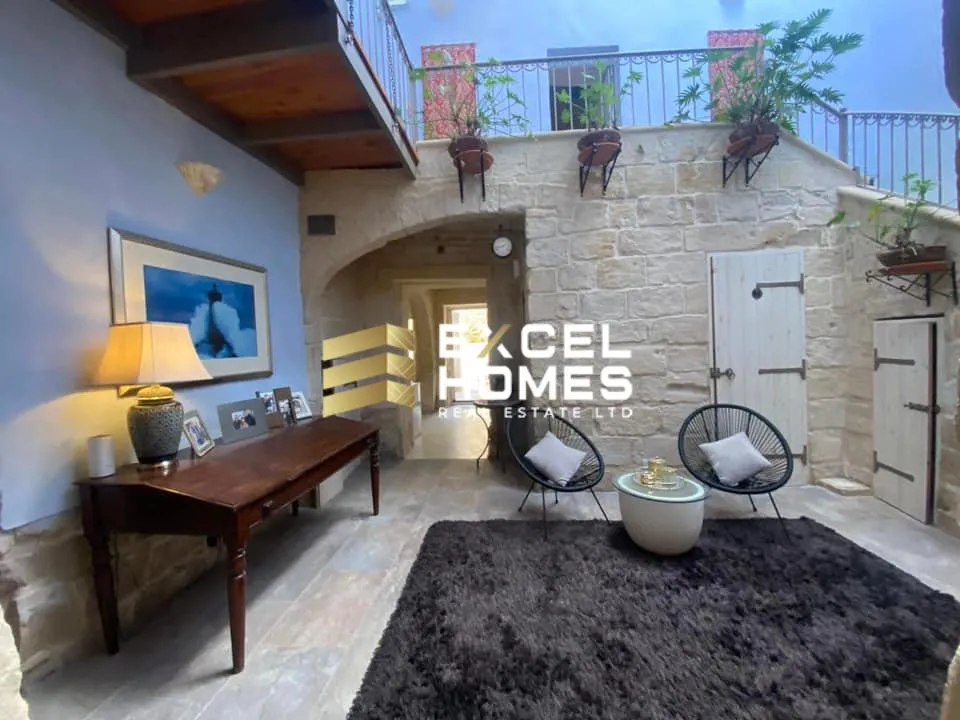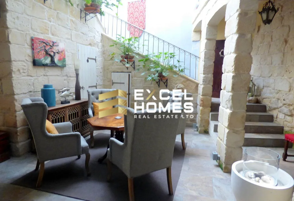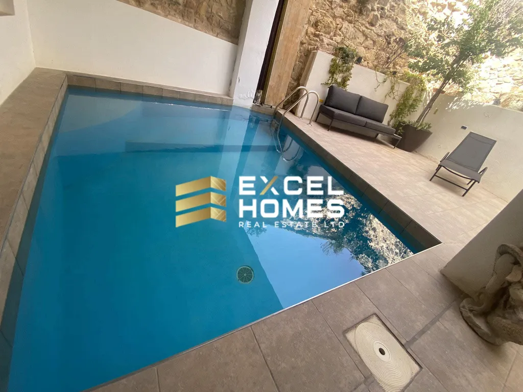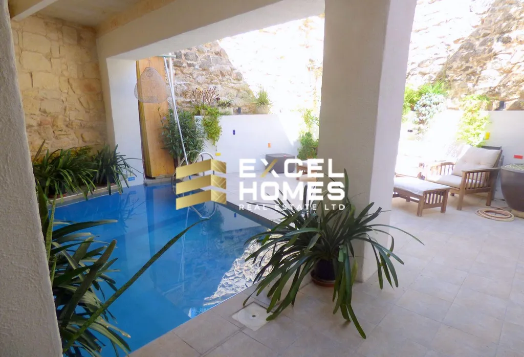 A historical building from the early 17th century is this beautiful converted house of character.. This property is in the old part of Naxxar town, having an imposing entrance leading to an atrium with a 3 storey high retractable roof. Furthermore on the ground floor one also finds a large room which can easily be converted into a kitchen dining and another large rectangular living room leading to the back outdoor area which also includes a plunge pool. On the first floor one find 4 double bedrooms all with ensuite walk in showers and an invertor air conditiong in each room. On the second floor leading from a wood and steel floating staircase one also finds a large, one bedroom apartment presently is a penthouse with an ensuite shower room and a walk in wardrobe and a very large open space being used as a kitchen/dining/living with a terrace on both sides.