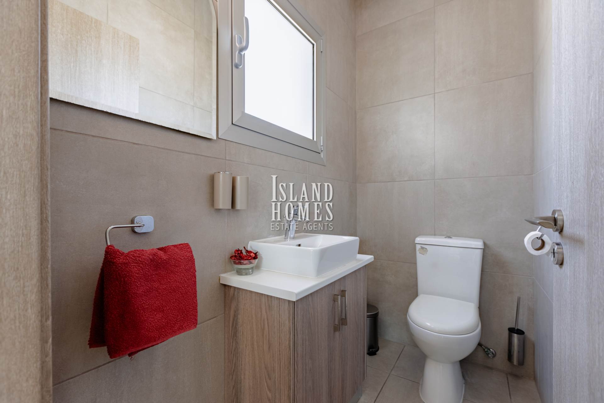 The staircase leads to the first floor where the 4 remaining bedrooms and family bathroom are located. The large master bedroom has ample wardrobe space, en suite shower with wc and stunning views of the Ayia Napa coastline from the windows.