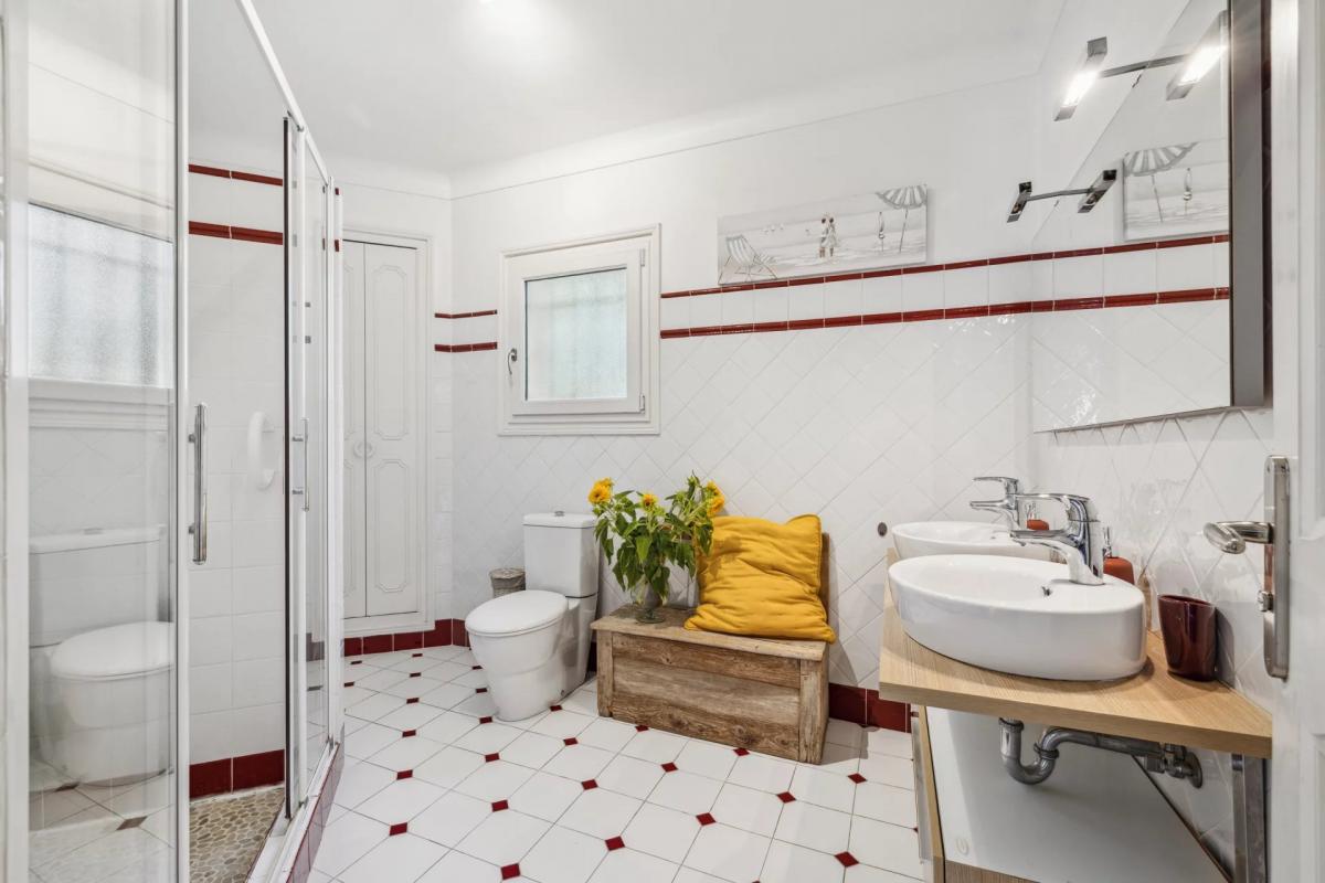 Just a short walk from the village centre, this single-storey house strikes the perfect balance between comfort, natural light and future possibilities. It features three bedrooms, an adjoining studio that can be merged with the main house, and an independent one-bedroom flat on the upper floor – ideal for hosting guests, short-term rental or professional use. The garden is a lush, Mediterranean haven, enhanced by a magnificent bougainvillea. A well-integrated pool sits at its heart, inviting relaxation and oriented to soak up the sun throughout the day. Inside, each space is bathed in light thanks to the home’s optimal orientation. A winter garden/veranda opens out onto the outdoors and can be extended to create a generous living area connected to nature. For those seeking more space, a second storey (R+1) is possible, offering new perspectives for expansion. The open view of the surrounding hills brings a sense of peace and space, without sacrificing access to local amenities. Here, you live on foot – between sky and land – in a home designed to evolve with your lifestyle. A rare property that blends charm, comfort and potential in a preserved natural setting.