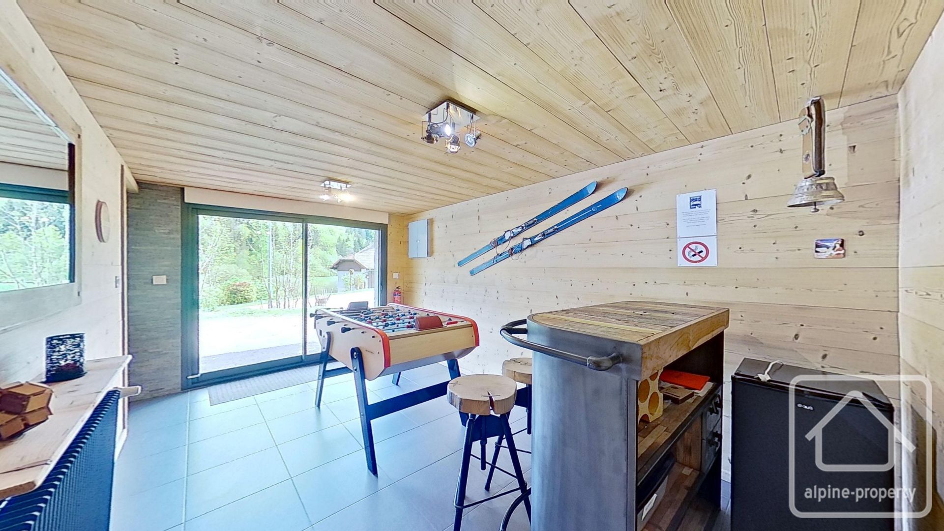 A storage room on the ground floor allows for the storage of skis and bicycles.