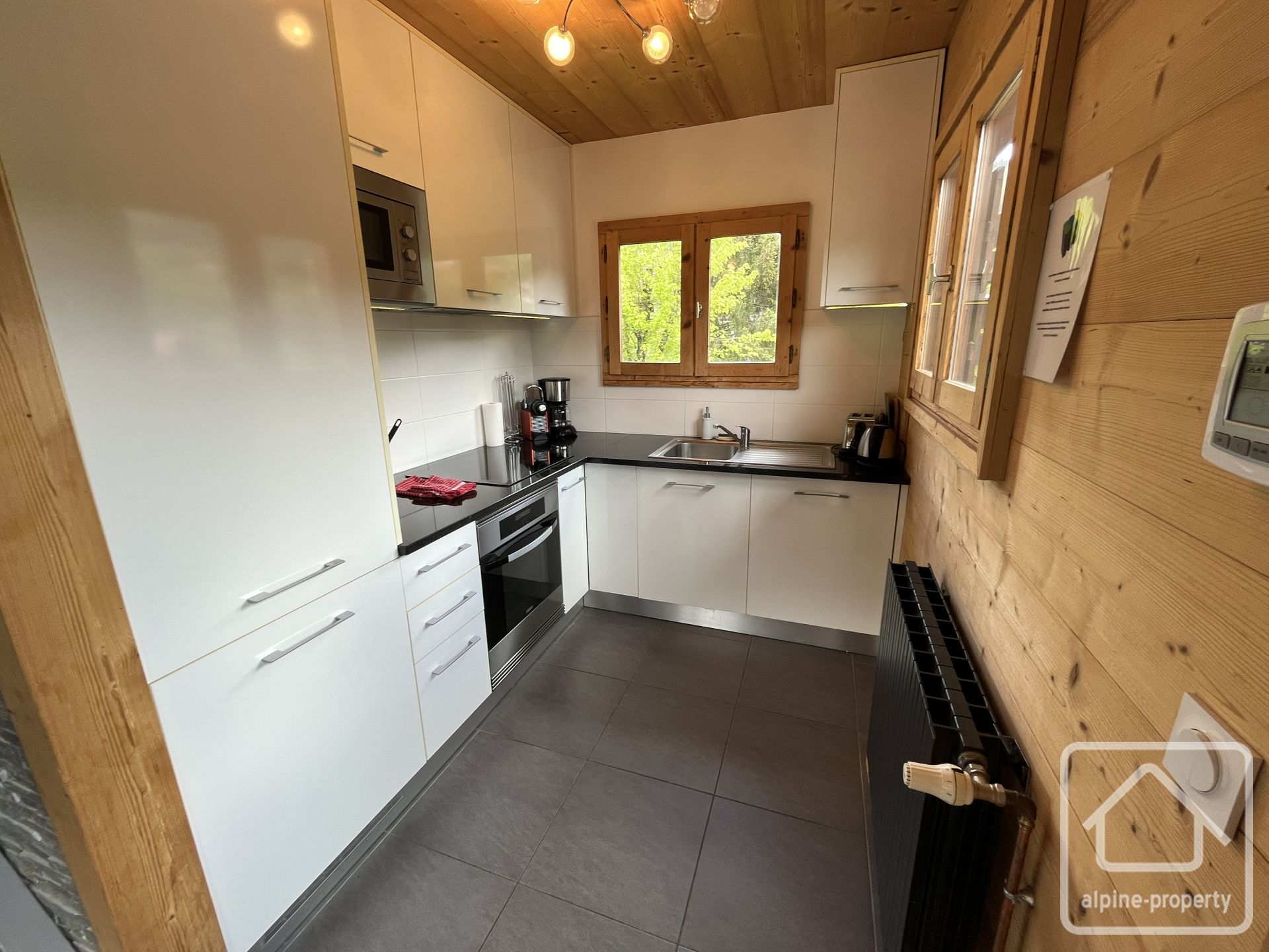 The chalet benefits from a beautiful southeast exposure and an unobstructed view of the surrounding slopes and mountains.
