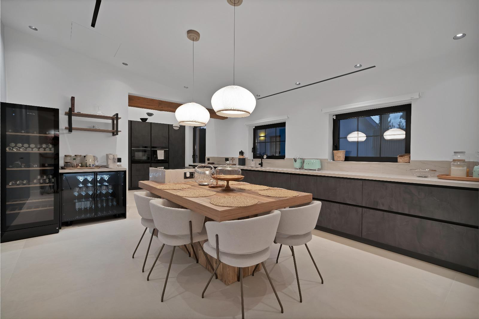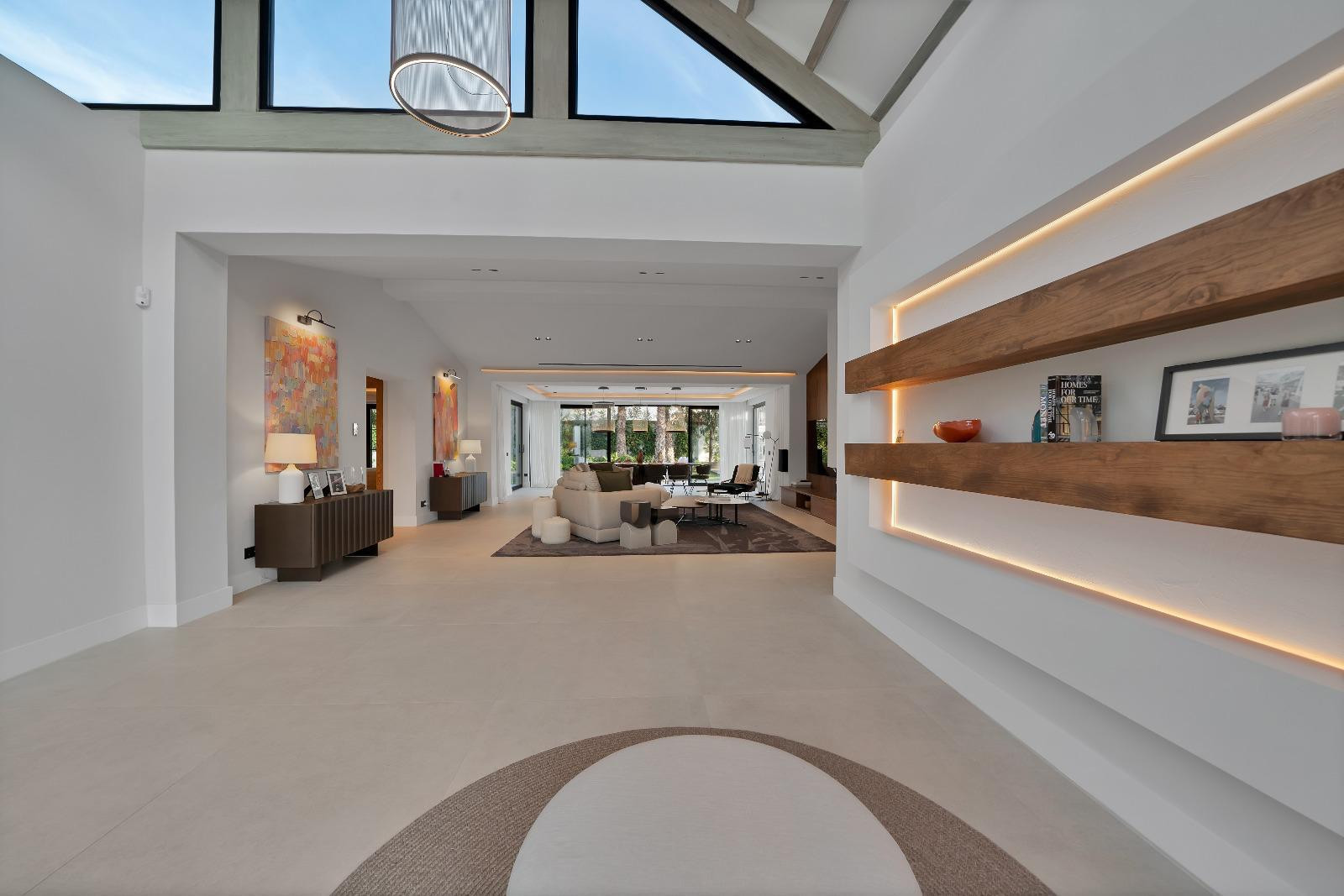 Set on a generous 1,494 m² flat plot, this south-facing property is the epitome of refined living. Featuring five en-suite bedrooms, including an independent guest suite with private access, the villa is designed for comfort, privacy, and effortless elegance. The interiors blend traditional Andalusian character with sophisticated modern design, all finished to the highest standards. It has beautiful height in the ceiling and beautiful windows to let in lots of light.