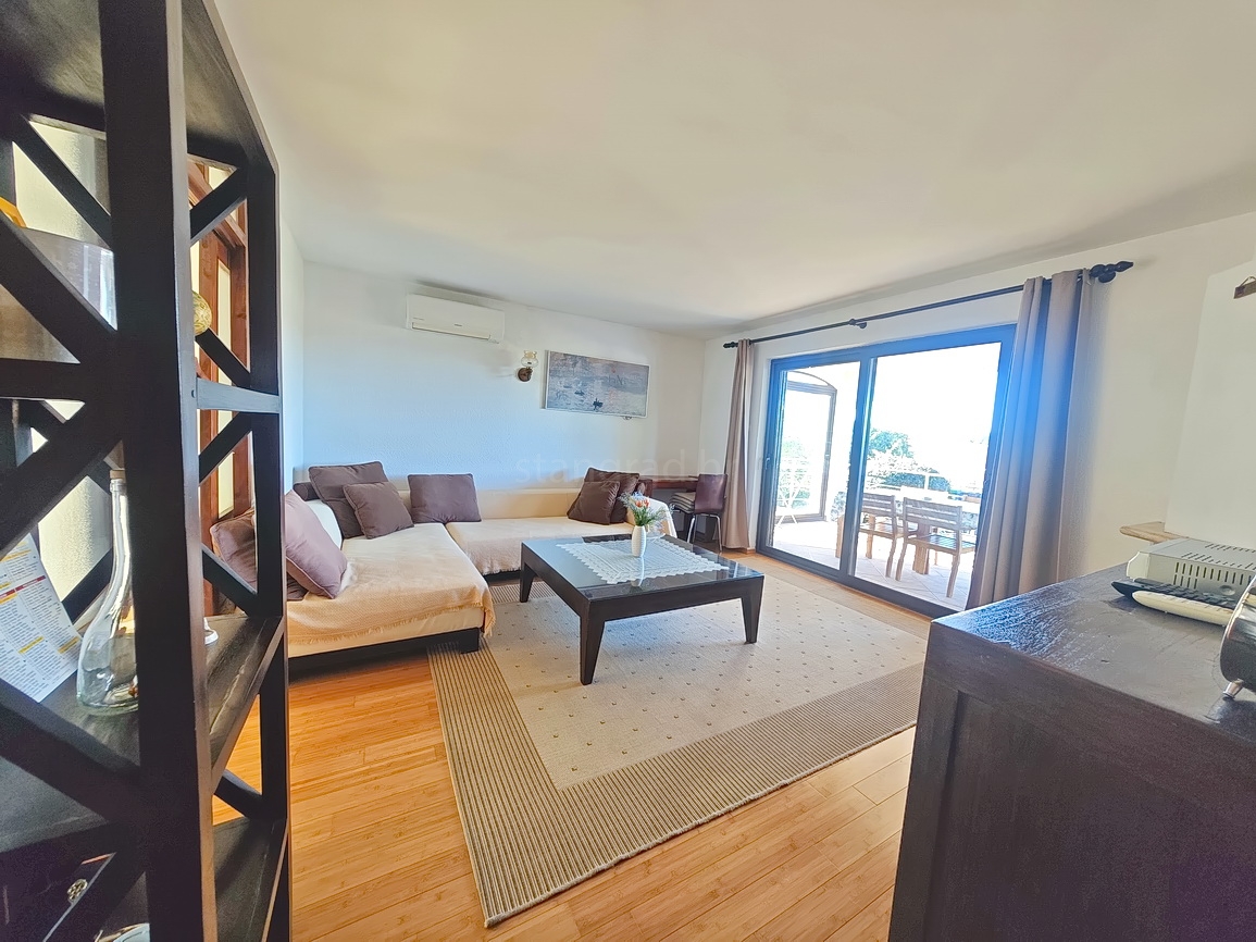 This very attractive building is spread over two functional floors and consists of two separate apartments. The total area of the house is 235 m². On the ground floor, there is a two-bedroom apartment comprising a living room, kitchen with dining area, bathroom, two bedrooms, a covered terrace, and a balcony. An external staircase leads to the first floor, which also features a two-bedroom apartment with an entrance hall, bathroom, kitchen with dining area, living room, two bedrooms, a terrace, and a balcony. The interior spaces of the property are exceptionally well maintained and fully equipped with modern technical appliances and high-quality furniture.
