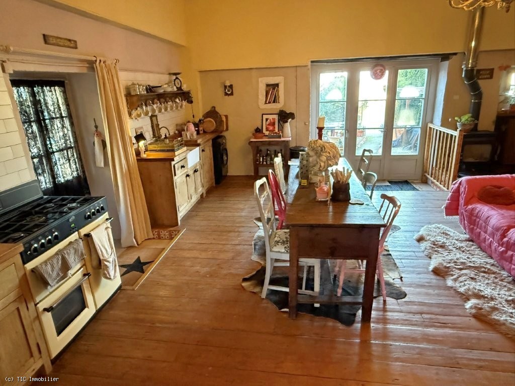 -Kitchen (47m2): wooden floor, fitted, wood burner