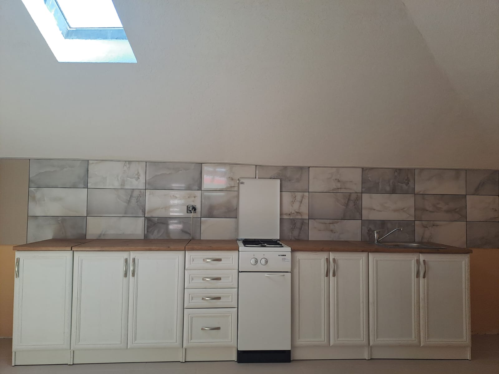 Modern Touches – Recently installed lighting and updated kitchen with stylish tiles and skylight.