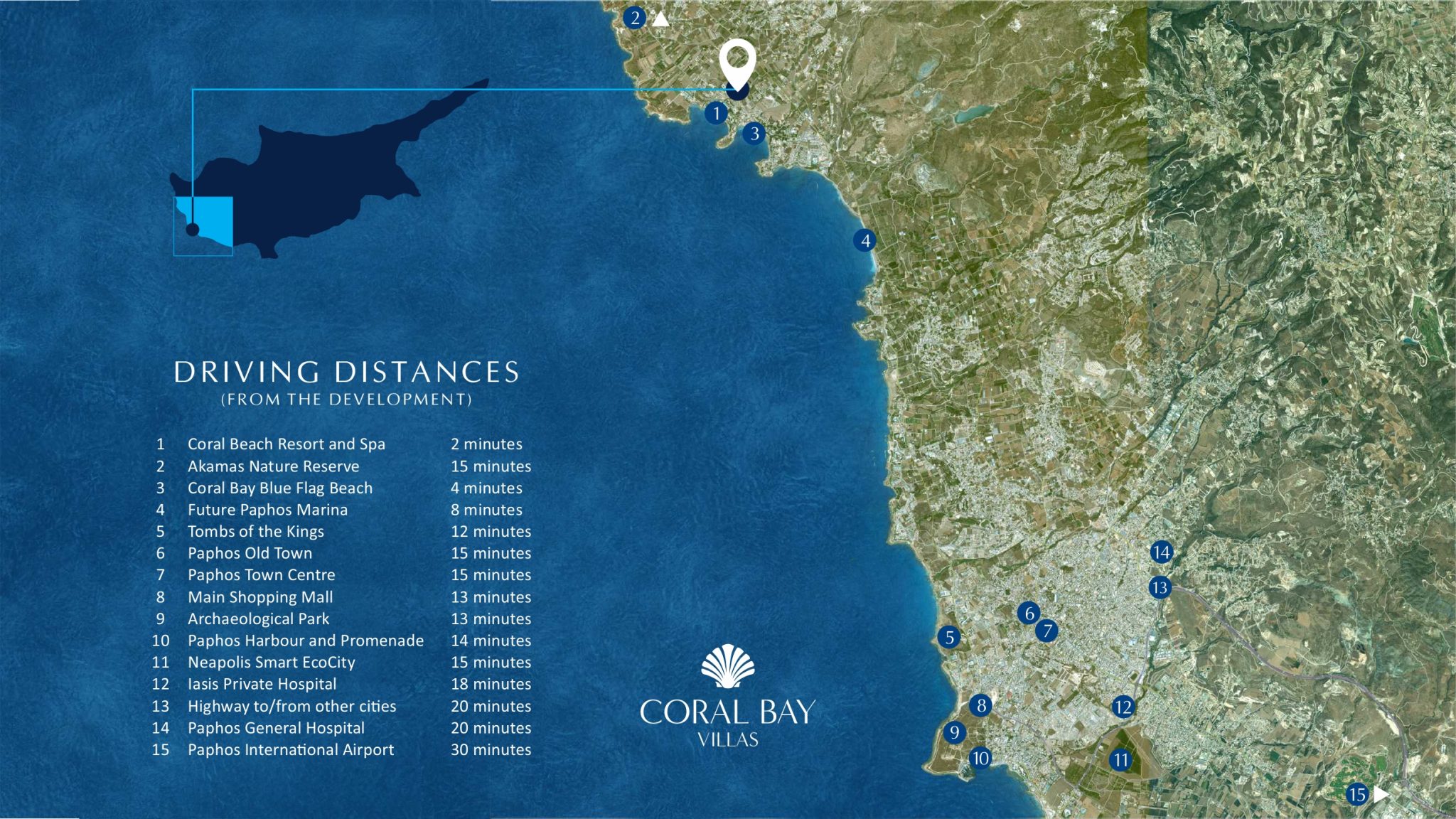 Each individually crafted villa features three bedrooms and is conveniently located near the sandy beach. Offering a private swimming pool, spacious verandas, and sun terraces, these villas provide breathtaking views of the Mediterranean. Additionally, the estate includes available plots of land for sale, complete with building permissions for constructing houses. All essential amenities such as well-maintained asphalt roads, electricity, water supply, lighting, and drainage are readily available. Situated on the outskirts of one of the finest beaches in the Paphos region, this area is renowned for its exclusivity in the real estate market of Cyprus.