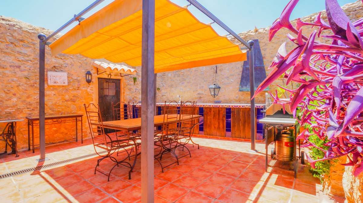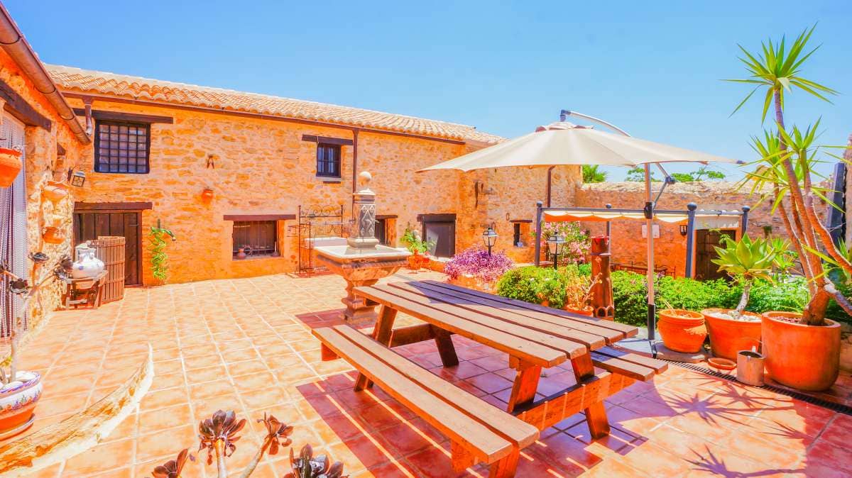 Outside, there is the pool and an adjacent Mediterranean garden of citrus and tropical fruit trees. Both are isolated thereby affording you the privacy you need to unwind and relax. After a refreshing swim, the sun loungers on the pool terrace are ideal for sunbathing or taking a nap outdoors. The straw pavilion has style and invites you to enjoy a refreshing sangria. Of course the field offers the possibility of a cozy barbeque in the spacious barbeque area. You can also choose to enjoy a front row seat to watching the picturesque sunset.