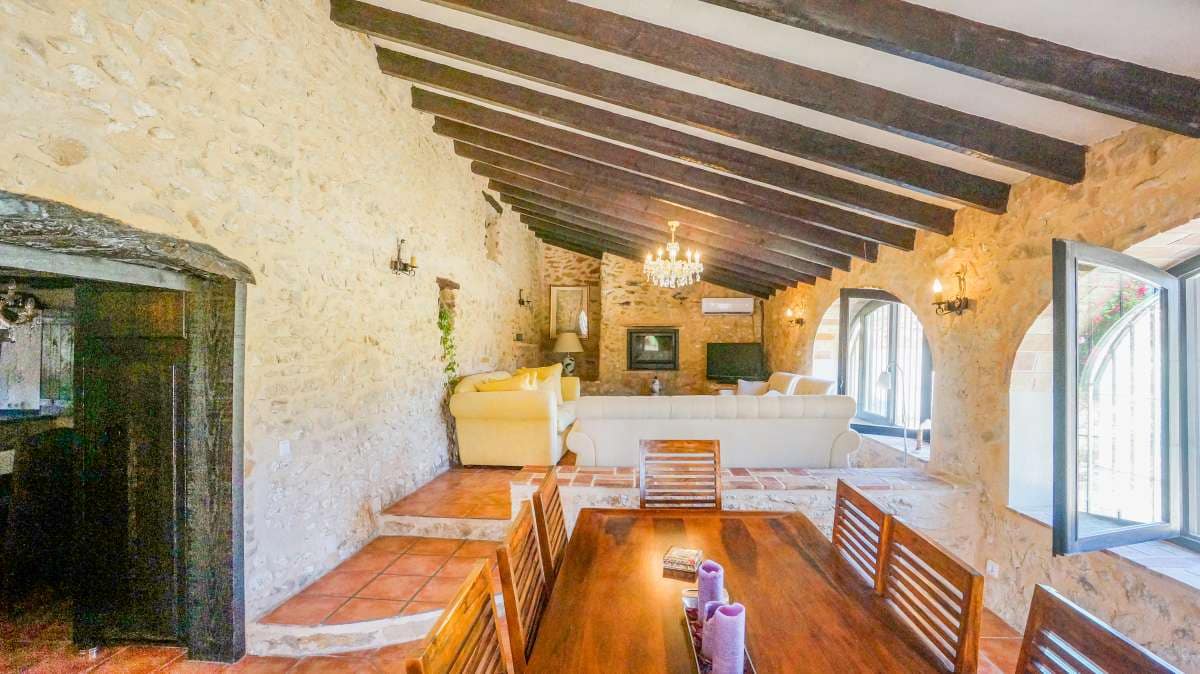 Full of elegance and exclusivity spread over 650sq.m, the Finca is surrounded by a magical natural landscape and 300 years of rich history. Each of its 8 rooms plus 2 apartments have their own individual character thus forming a special and incomparably harmonious unit. Embedded in this typical landscape is the distinctive architectural style of the property which is light brown like the surrounding terrain, as well as the rocks on the walls. The architecture of the walls and the ceilings is also harmonious with the furniture and radiates a warm and comfortable atmosphere.