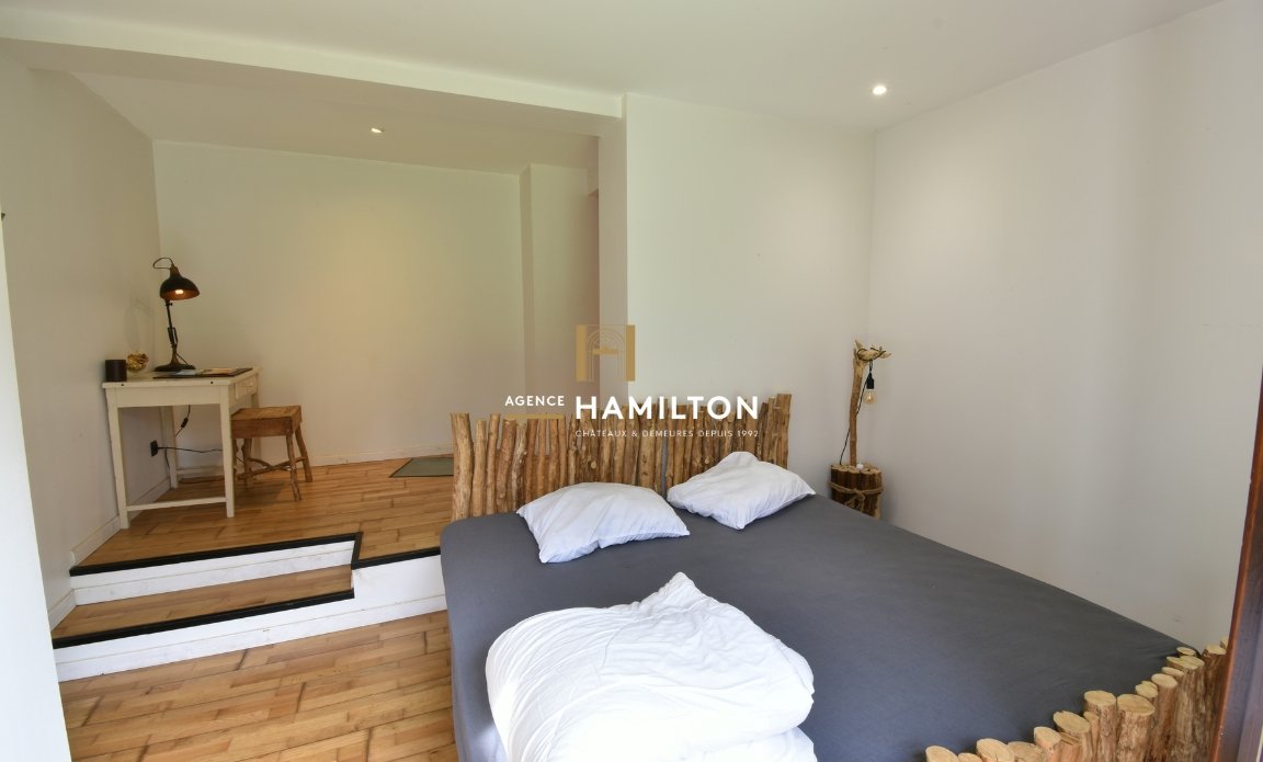 The mill, fully renovated in 2017, consists of three adjoining gîtes: the first is approximately 200 m², the second is about 60 m², and the last is around 40 m². Together, they offer a capacity of 23 beds and can host up to 80 people for a reception. The estate has significant potential for expansion on plots zoned for natural recreation, making them ideal for developing the business.