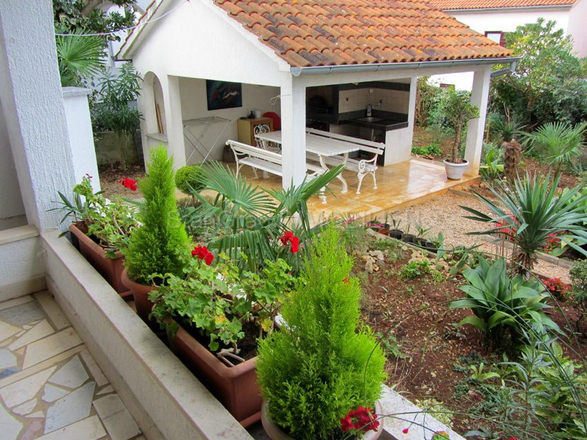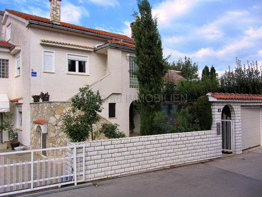 Island Krk, Malinska. Real estates agency Stan Grad Immobilien is offering a beautiful spacious house for sale. The facility is located in a quiet street, about 350m away from the sea. The house has a basement, ground floor, first floor and attic. On the ground floor of the property there are two apartments ideal for renting, with a large covered terrace area of 35 square meters, upstairs there is a commodious apartment with terrace of 35m2 and in the attic an apartment with a balcony. Ground floor apartments contain a living room with kitchen, kitchen, three bedrooms, two bathrooms and two hallways. The apartment on the first floor contains a large living room of two levels, dining room with kitchen, bedroom, bathroom, toilet, and pantry. Attic of this property contains a living room, two bedrooms, dressing room, bathroom and part of the attic and balcony. In the ground floor of the house there is an office space of 22m2, central heating boiler with a toilet and a small storage room. The house is fully furnished and has a landscaped greenery and refined garden, garage and garden house. The seller guarantees rapid transfer of the house to the buyer and the real estates agency Stan Grad Immobilien will help you with utilities transfer.