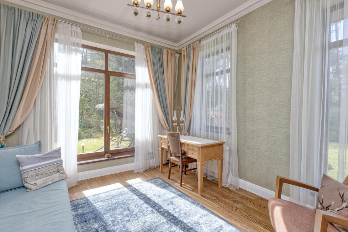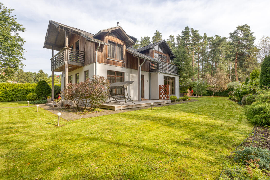 There’s a quiet magic about this place—a two-story house with weathered wood and a soul that knows the seasons, proudly rises on a generous plot of green land. The grass grows thick and soft, caressed by sun and rain, and the wind hums through the nearby pine forest like a lullaby.