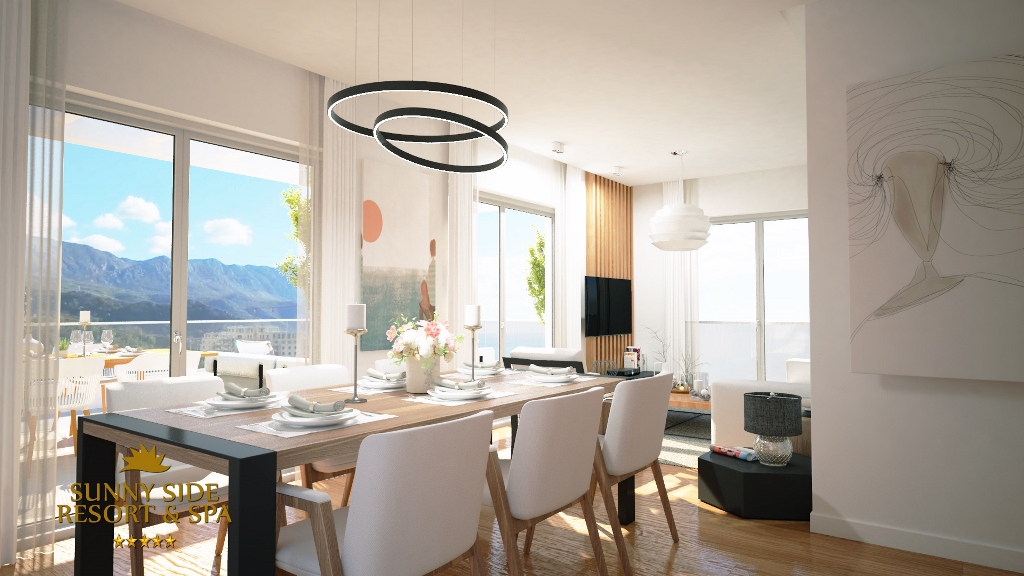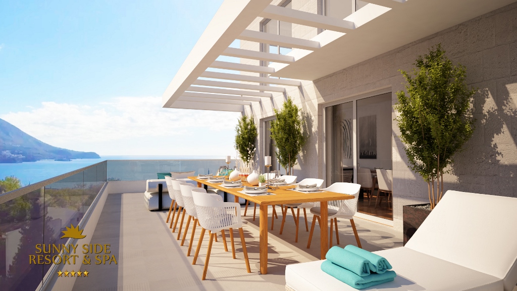 Accommodation in this complex is comparable to high-level hotel accommodation. The staff is constantly present in the complex; provides clean towels, cleans the sauna and swimming pool, keeps the gym clean. In addition, there are rules of conduct in the complex, in accordance with which tenants must observe silence at night. Pool parties and other unpleasant moments that may harm the comfort of others living are excluded. The complex has a playroom for children. The Sunny Side Resort & Spa complex has all the conditions for your comfort: